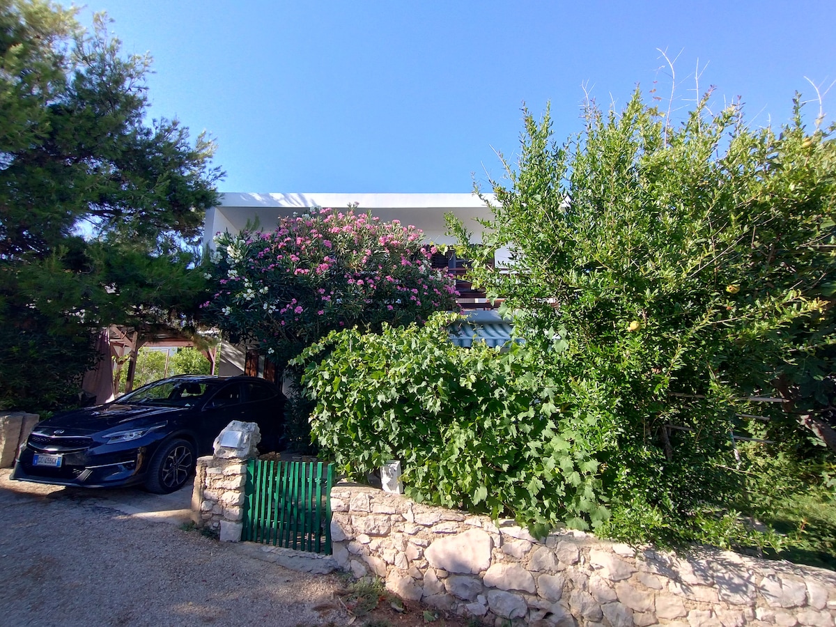 This lovely apartment is placed in the house which is located outside the city center. The house is surrounded by a garden with Mediterranean vegetation. There are near the house beautiful, natural beaches (approx. 250 m). There is in front of the house a large parking. Nearest small shop is located 10 minutes walking from the house, large stores are located in the center of the town of Pag. Center of the town is a 20 minute walk where there are cafes, restaurants and other tourist offer.