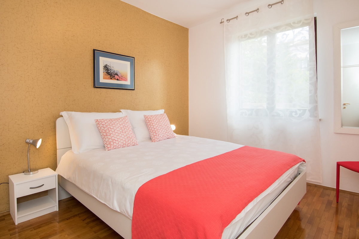 Discover serenity in our charming one-bedroom apartment nestled in the heart of Porec. Immerse yourself in the tranquility of a lush garden adorned with vibrant flowers and olive trees, while enjoying the convenience of being in the city center and a mere 5-minute stroll from the beach. Your stay comes complete with all modern comforts and we even provide two bicycles for you to effortlessly explore the surrounding area. Welcome to your perfect retreat!