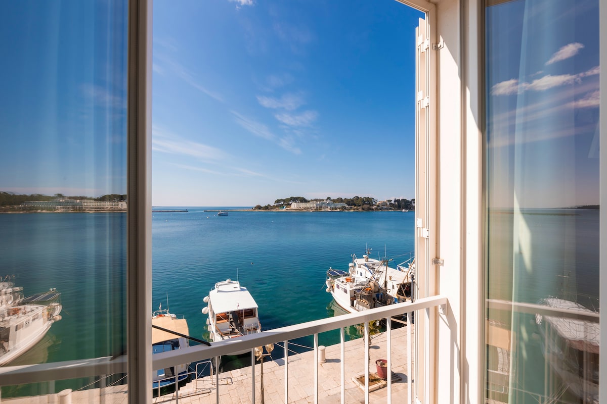 Newly renovated 1BD apartment with sea view in very center of Porec that has everything you need for a carefree vacation. Grocery store: 10m Pharmacy: 150m Beach: 250m Clinic: 300m Main square: 30m Old town (UNESCO protected Euphrasian basilica): 250m Farmers market: 250 m Bus station: 300 m Aircon and TV's in bedroom and living room, fast wifi, high quality mattress, washing machines for laundry and dishes, mosquito nets.