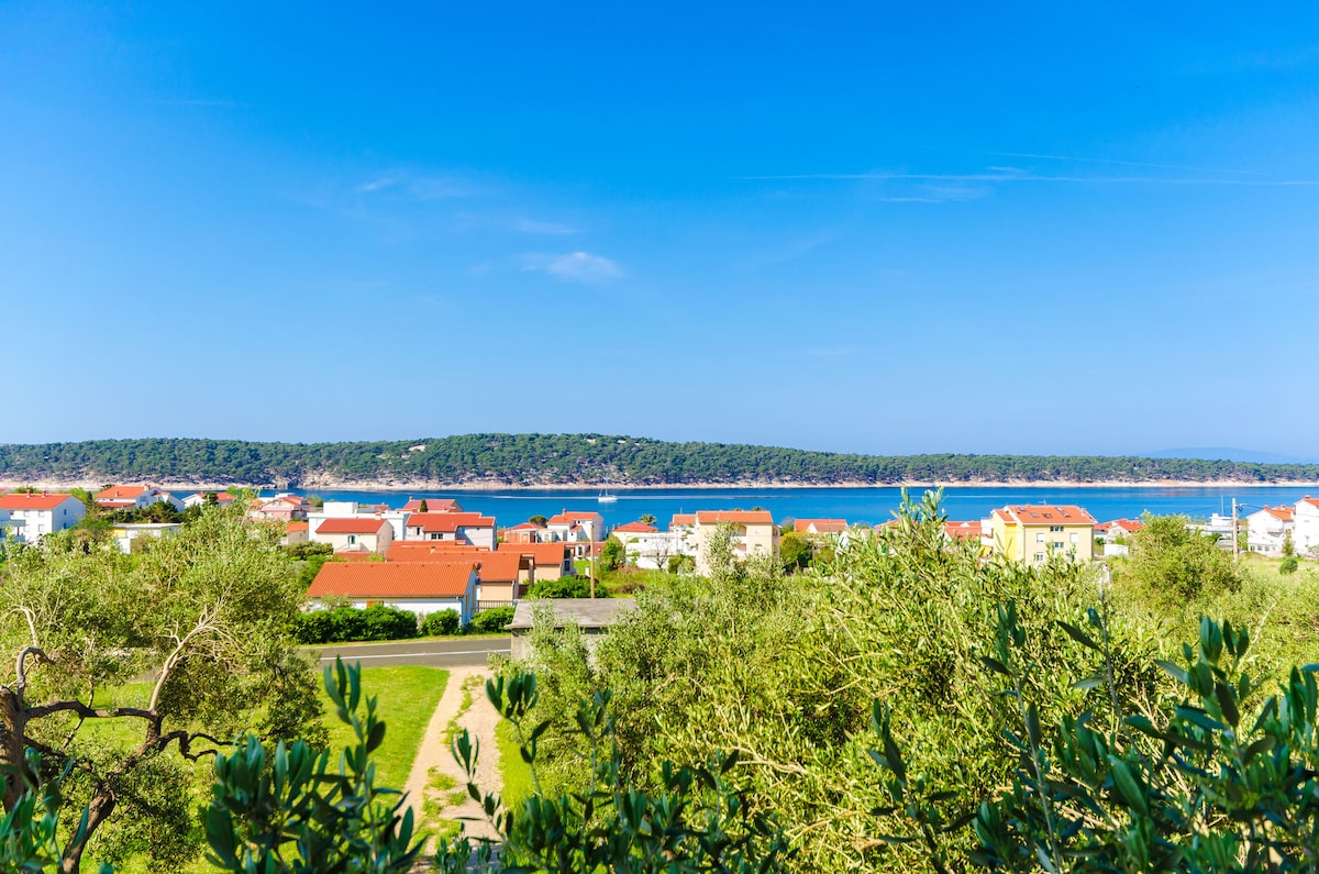 This freshly renovated house is situated in the village Lun , in millenary olive garden. It is just 800mt from sea and 16km from Novalja. Nice and modernly equipped with beautifull sea view.