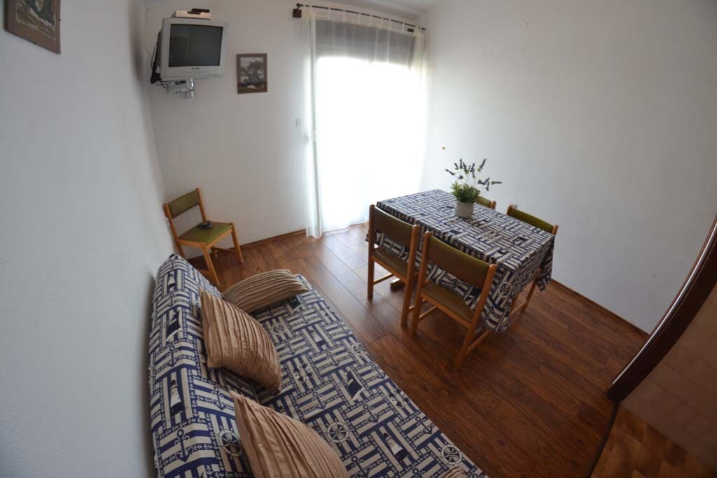Dvosoban apartman nalazi se na prvom katu. Apartman sadrži dvije sobe, dvije kupaonice, kuhinju, dnevni boravak i balkon sa pogledom na more. Svaka soba ima svoj balkon. Stan je ugodan. Parkiralište je dostupno.