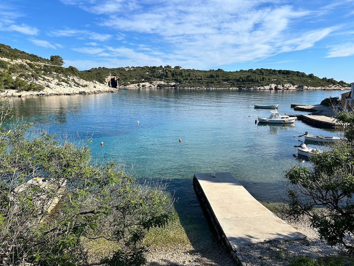 Maja 1BDR Suite A is located very close to sea in Zenka bay on the south side of Vis island. Situated on the first floor, it has tastefully decorated one bedroom with kitchen, bathroom and breathtaking sea view terrace. This suite is set up for up to four adults or for a family with children. Parking is available in front of the suite.