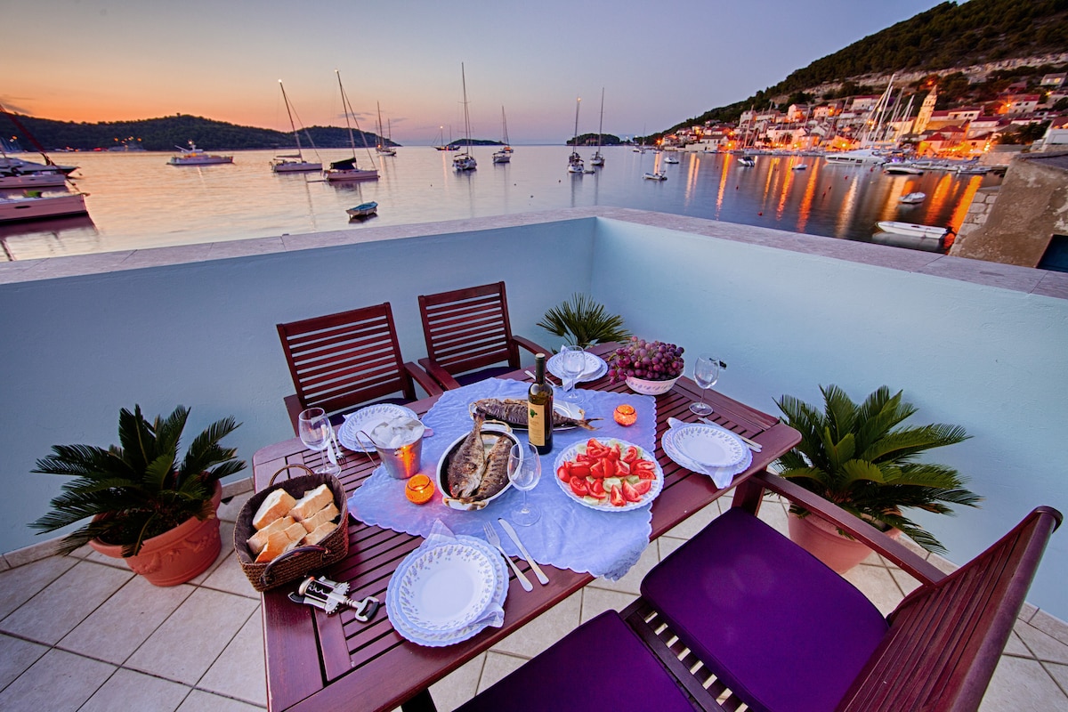 Our house is in the most beautiful bay on the Vis island called Zaglav. There is a sandy beach and a magnificent view of the archipelago. This appartment is on the first floor of our house. There are only 2 houses in the bay and no cars as there is no road. Perfect place for a holiday away from the hectic daily life and in harmony with nature. You will come home in the Zaglav Bay! There is a small restaurant in the bay where you can enjoy lunch or dinner if you don't feel like cooking yourself.