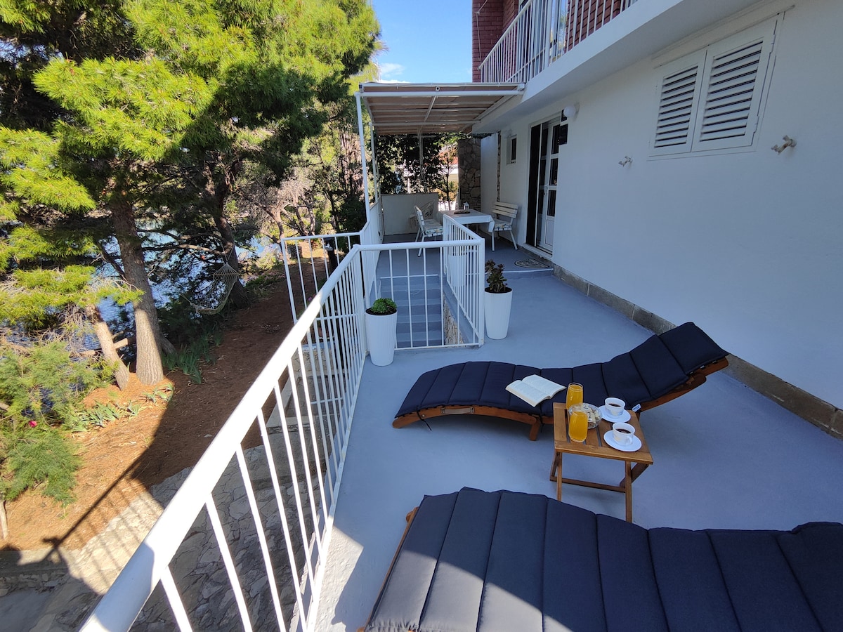 The apartment in house is located right by the sea in a beautiful sandy bay Stoncica, 7 km from the town of Vis. It is in the shade of a pine forest in a very quiet and relaxing place, surrounded by nature. It has its own small bridge from which you can jump directly from your bed and refresh yourself in the crystal blue sea. The house can be reached by foot down a stony path and the distance from the parking area is approximately 500m. Before booking please check if the place suits your nature.