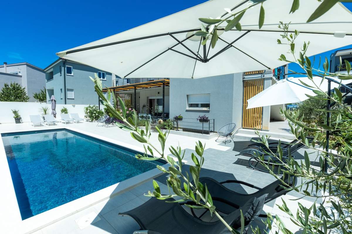 Welcome to villa Velebita! A unique property offers you everything you might need for having unforgettable holidays in Croatia! The property is located in the suburbs of Zadar city, where you can enjoy a peaceful time with your family or friends away from a city noise and fuss, swimming, sunbathing and sipping on cold drinks near the pool, making meals in summer kitchen and gathering at huge oak table, and viewing magnificent mountains of Velebit.