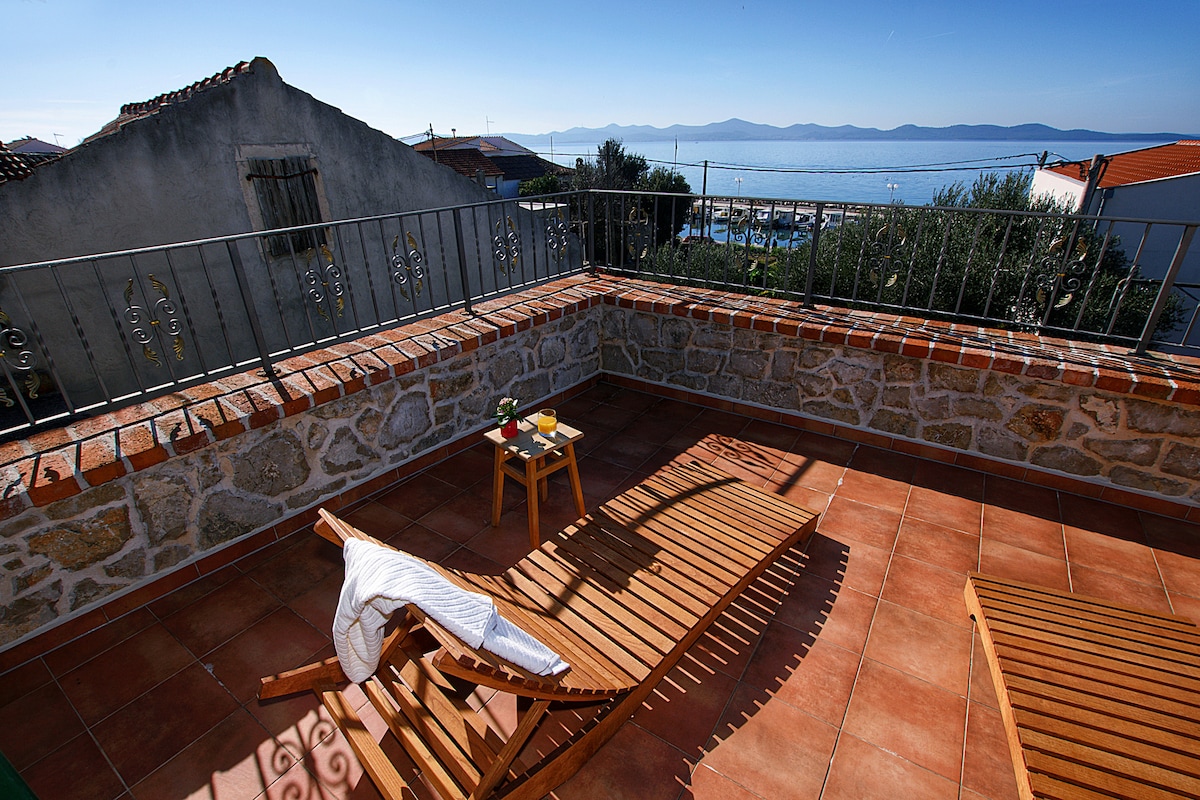 Apartment (40m2 for3 persons) Big terrace with beautiful view. In Diklo,10 m from the sea/beach. Shop & restaurant 50 m, sandy beach 200 m. 70 m from the centerParking & bus station in front of the house. ..This house is located in the center of Diklo.and so is the beach,across the apartment.the tennis court and the restaurant Taverna 50 M RANGE FROM THE HOUSE, as well as 2 caffes are located within 50m range from the house.the sea and the first beach are located right across the apartment.