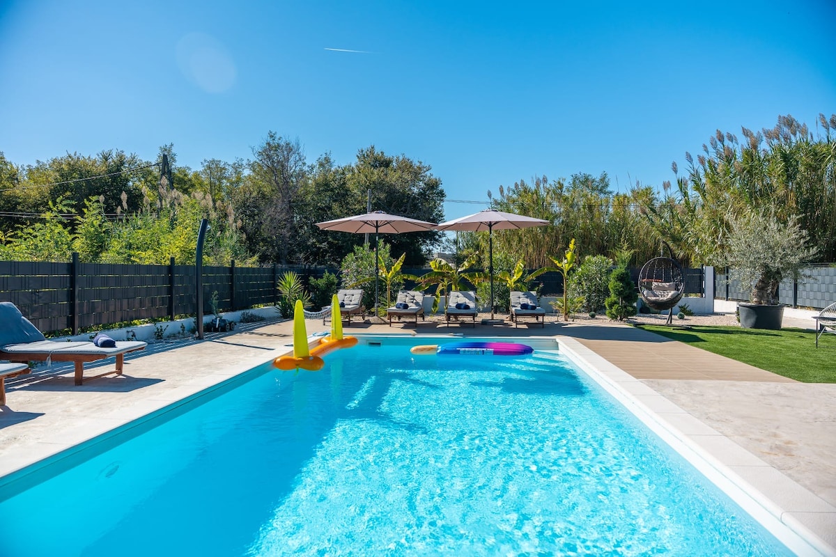 Prekrasna nova vila s grijanim bazenom, jacuzzijem, biljar, punionica za električna vozila samo 800 m od plaže. Idealna za obitelji s djecom i sve željne odmora u blizini svih sadržaja, a dovoljno udaljeno od buke i gužve. Kuća ima 6 TV prijamnika i svi imaju mogućnost gledanja Netflix, brzi Starlink internet u svim prostorijama. Idealno za odmor, a zadovoljava potrebe suvremenog čovjeka za brzom komunikacijom. U krugu 2 km nalazi se više vrhunskih restorana, dućana, caffe barova.