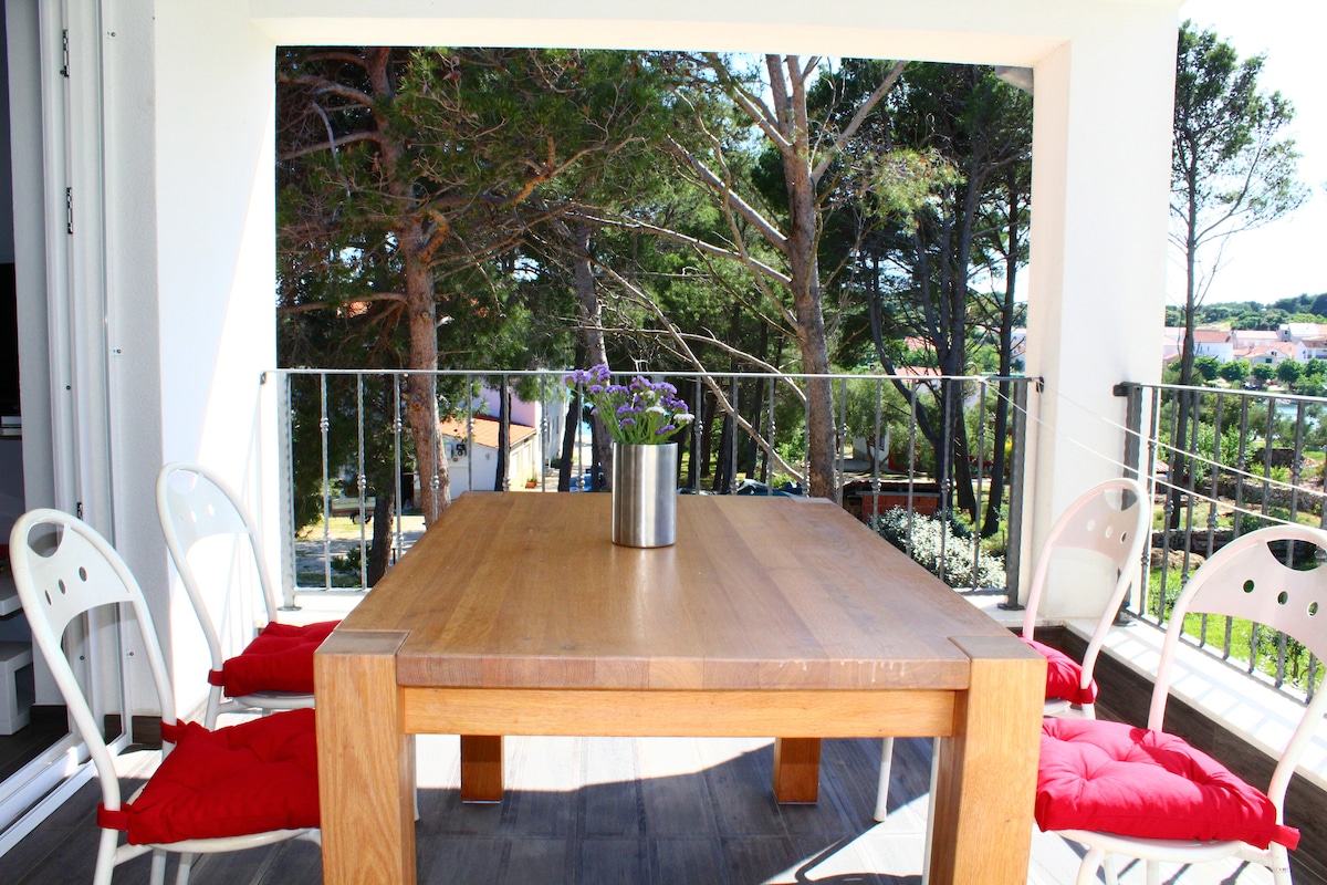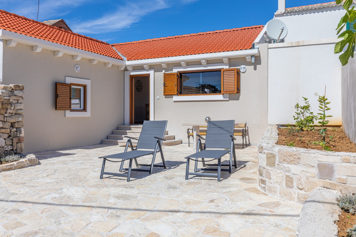 SunsetLoft 16 - 50qm Apartment für 4 Personen mit großem Garten und tollem Blick aufs Meer. Der Name der Ferienanlage SunsetLoft spricht für sich. Am wohl schönsten Fleck auf der Insel Vir gibt es fast jeden Tag Sonnenuntergänge wie im Film. Insgesamt hat das Grundstück etwa 2000 qm in der Mitte steht ein Haupthaus, SunsetLoft 14, rechts (12 und 13) und links jeweils zwei Bungalows (15 und 16). Ob Sie entspannen und baden oder die Gegend erkunden oder arbeiten wollen, die Gegend bietet viel an.