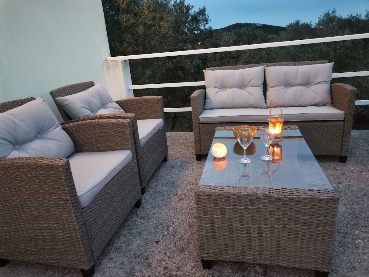 Opustite se sa svojom obitelji ili prijateljima u ovom ugodnom smještaju. Prekrasna obiteljska i prijateljska atmosfera okružena maslinikom i prirodom. Prilaz kući je potpuno ravan i jednostavan. Ako tražite bijeg od svega, na pravom ste mjestu. Naš apartman nudi onaj rijetki dalmatinski mir gdje su jedini 'glasni' susjedi cvrčci, uz lagani povjetarac i pogled na more u daljini.