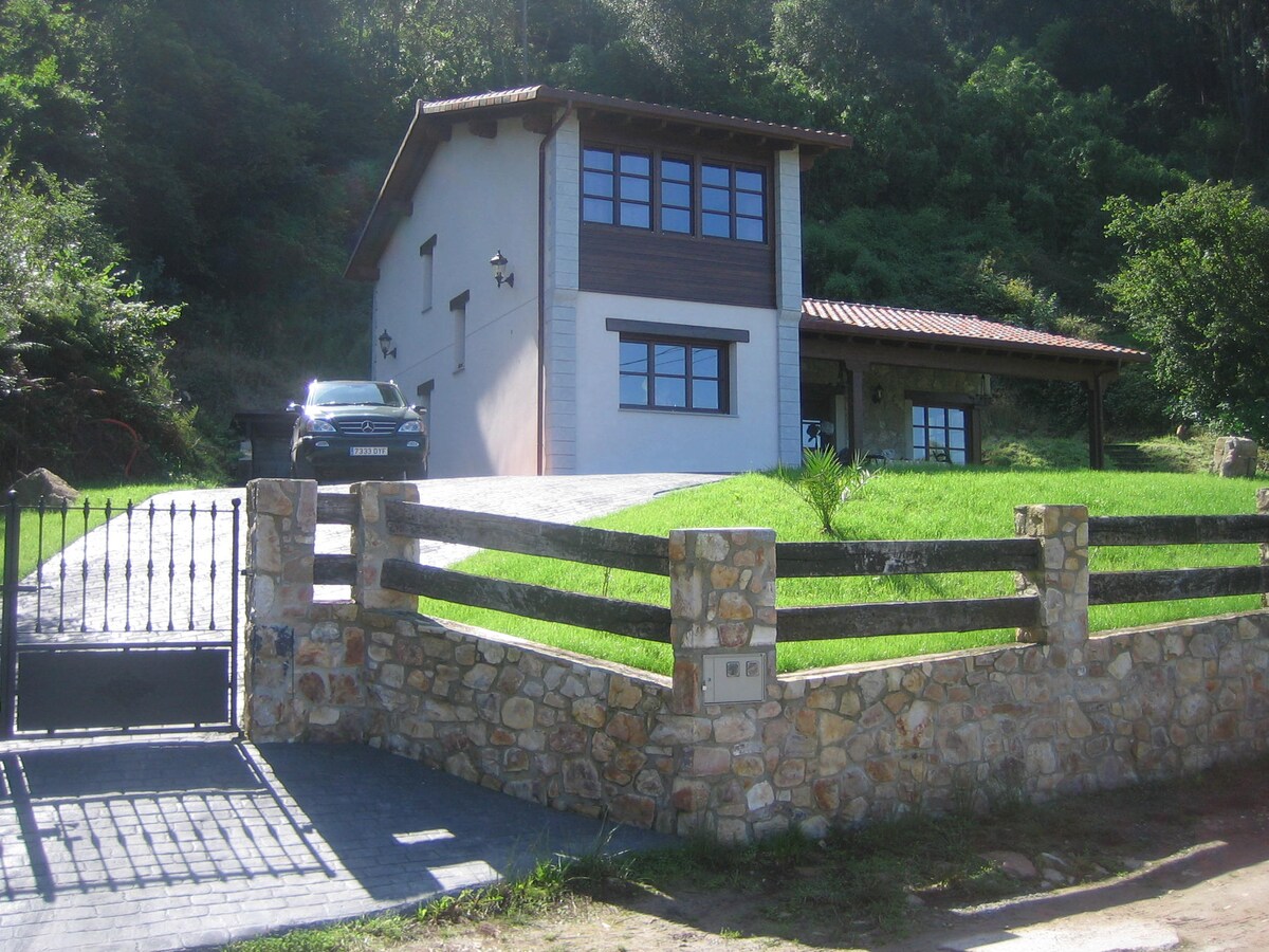 Take the whole family to this fantastic accommodation surrounded by green areas, between Gijón and Candas, 5 km from the beach and at the foot of Monte Areo, ideal for mountain biking, with great marked routes, walks along the old railway route ... New house fully equipped (dishwasher, oven, washing machine, toaster, coffee maker...) large porch with barbecue and large garden for recreation of the youngest. 5 bedrooms, 2 kitchens, living room, kitchen-dining room and three bathrooms