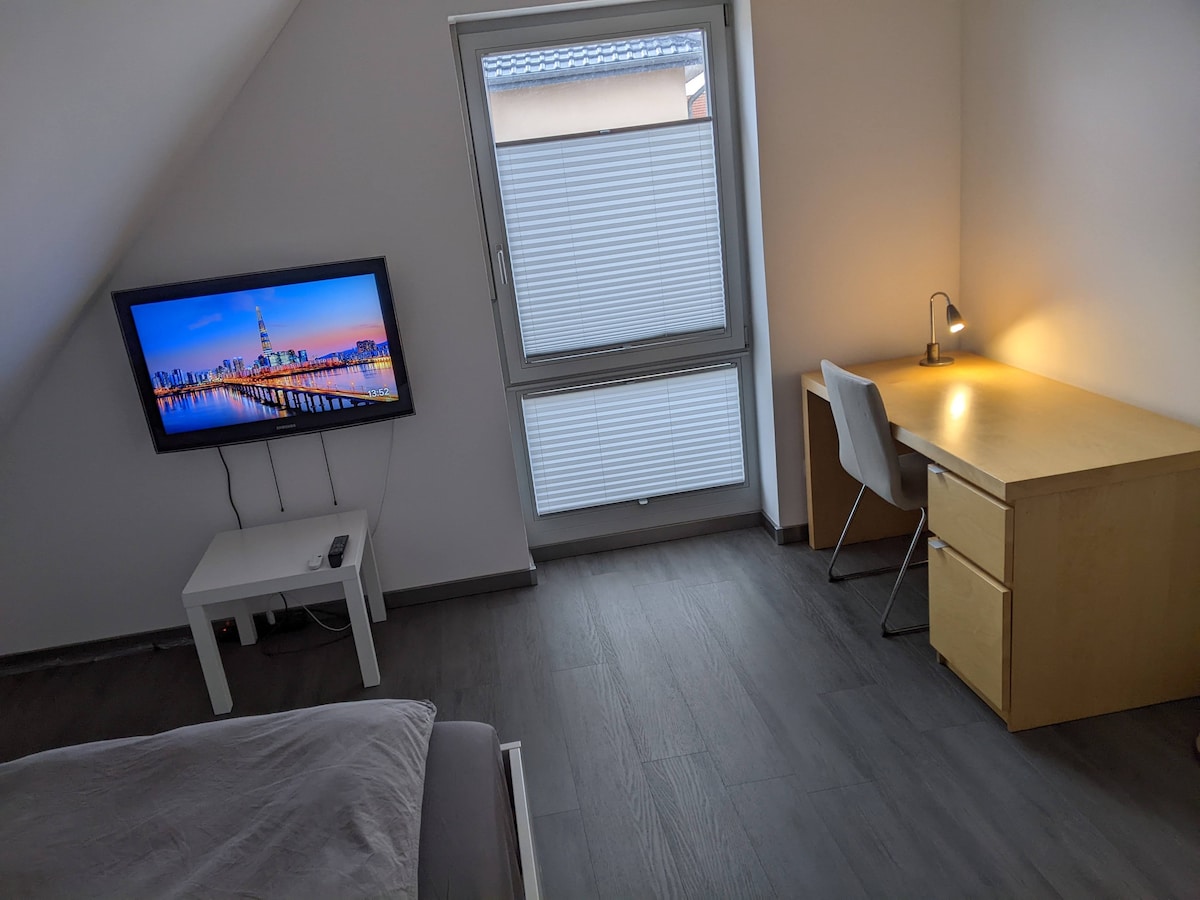 Genieße das Leben in dieser zentral gelegenen Unterkunft. Was wir dir bieten: - ein hübsches Souterrainzimmer mit Miniküche und Wannenbad - 10 Min. Fußweg in die Innenstadt - 3 Min. Fußweg zur Bushaltestelle - ruhige Lage in dritter Reihe - Abstellplatz für dein Fahrrad - Mitbenutzung unserer Terrasse Was vielleicht stört: - Haus ist hellhörig, die Küche ist direkt über der Wohnung, keine Trittschalldämmung, wochentags ab 6h - die Dusche ist nur 1:85m hoch - kein behindertengerechter Zugang