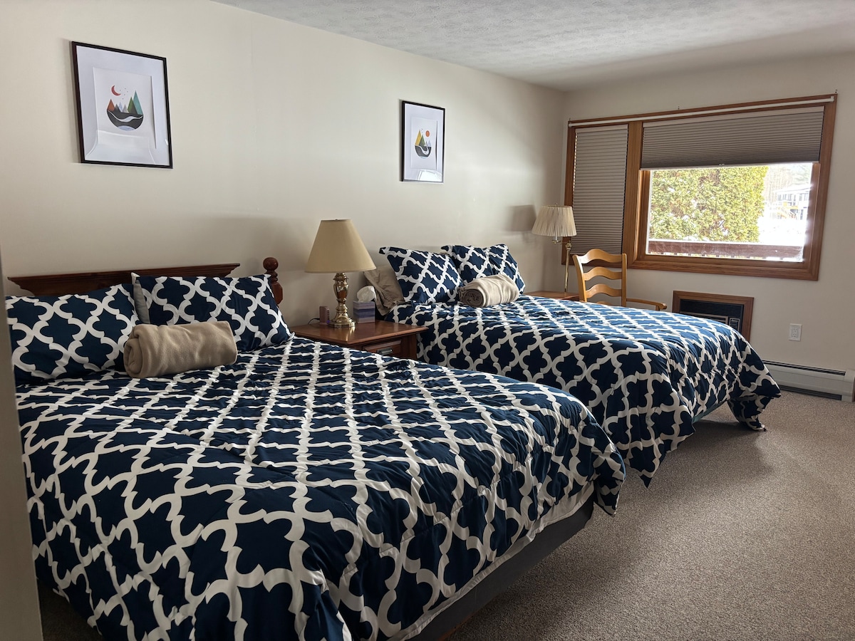 This is one room with a queen bed and a 3/4 bathroom. Breakfast nook, mini-fridge, microwave, coffee maker. This room comes with it's own seperate entrance, private bathroom, and private patio (Patio is not open in the winter). Also we have off street parking for one or two cars. I am new to hosting, so for now please a two person max. Walking distance to downtown. Less than 100 yards and you are in the middle of downtown Meredith.