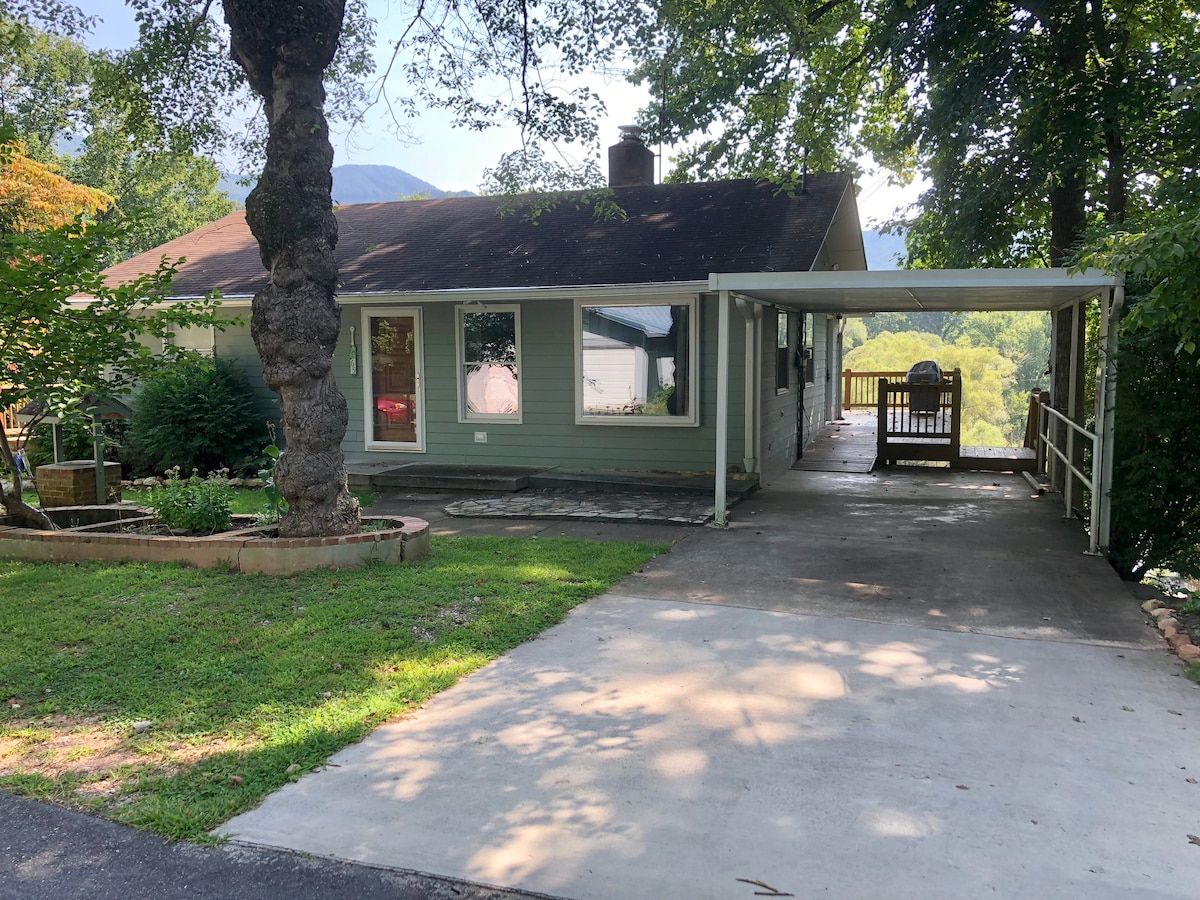 With over 100- 5 STAR REVIEWS, we welcome you too! The Airbnb is a private apartment below our home, 1 bedroom /Qbed and the living room has Q sleeper sofa. (Not 4 beds). Have fun with friends or family in this sm adorable apartment under our home, no stairs & private entrance. Mountain Views are gorgeous, horses below the property and the sunrise, make it perfect. Yellow Creek Gap Appalachian Trail is one mile away. Pick up available. Dragon Tail, Bryson, Robbinsville, Fontana nearby.