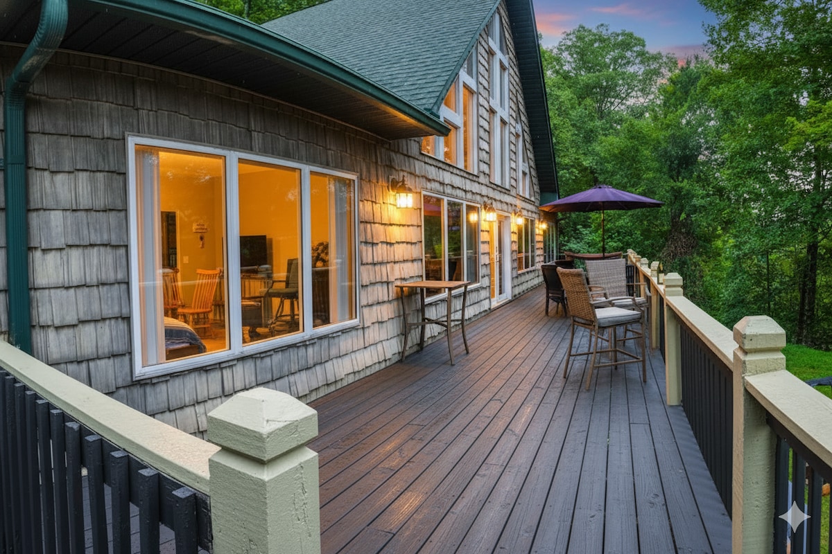 Our 5BR/3BA log cabin is a favorite for families riding the train, motorcyclists tackling the Tail of the Dragon, & outdoor lovers visiting the National Park, biking Tsali, or rafting the Nantahala River. It's the perfect home base for a Great Smoky Mountains adventure. Just minutes from Bryson City, Nantahala, Fontana Lake, & the Park. It’s also a short drive to Harrah’s Casino, Deep Creek, & the Appalachian Trail. This spacious, family-friendly retreat is packed with amenities and sleeps 12