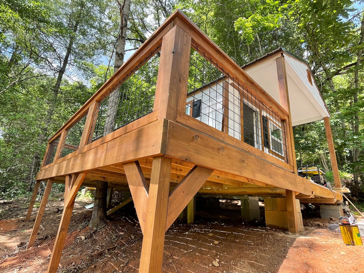 Misty Hollow Cottage at Grey Valley is a luxury one bedroom tiny home nestled in the Smoky Mountains, just minutes from downtown Robbinsville, NC. The Misty comfortably sleeps 2-4, is equipped w/washer/dryer, full kitchen, & private deck w/ BBQ grill. Perfect for small families, couples retreat or thrill seekers riding the Tail! Wheelchair accessible. Pet friendly, w/owner permission. Situated on 10 acres along gorgeous Mountain Creek, and sister to Jai Hollow Cottage, and Wounded Warrior Cabin.