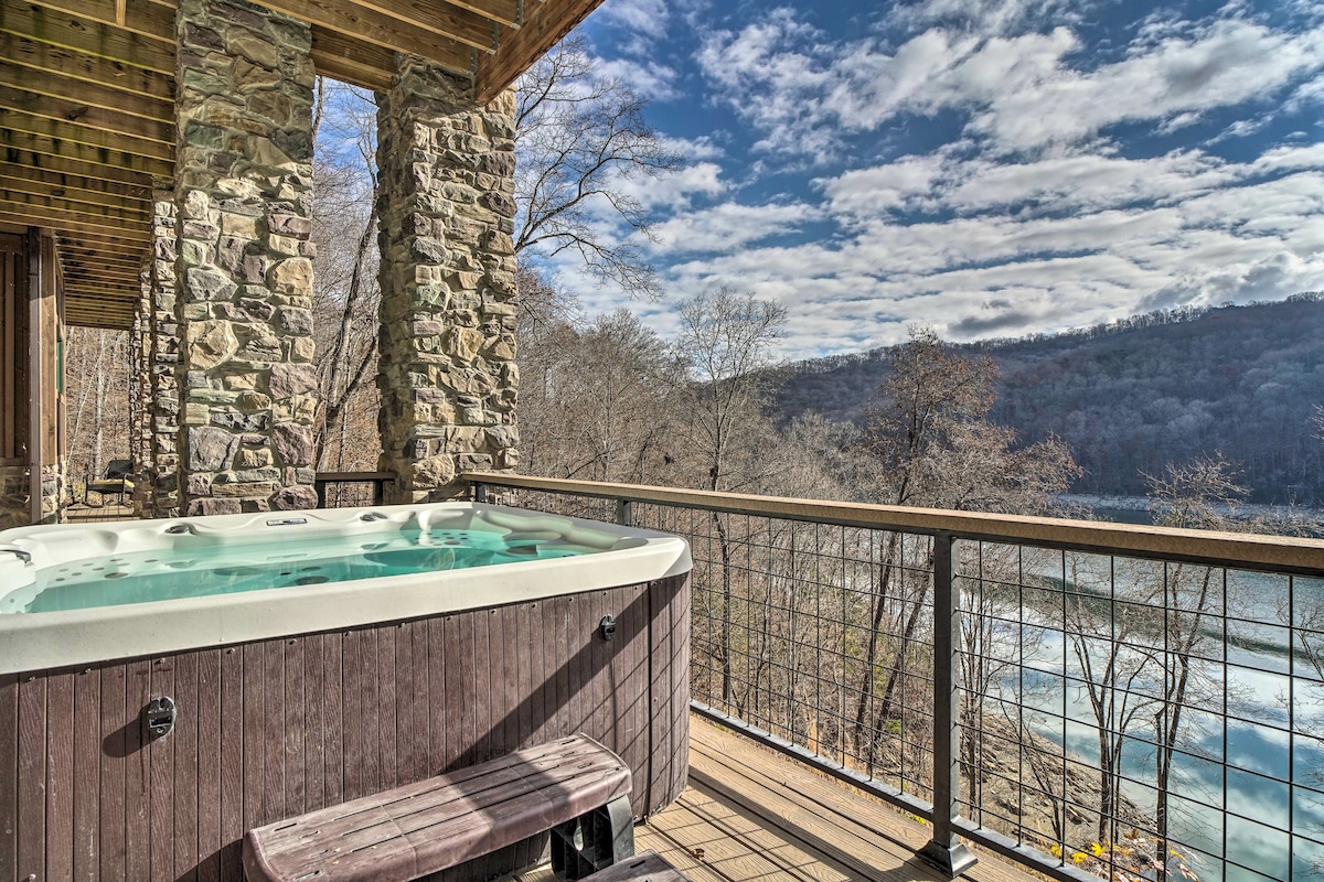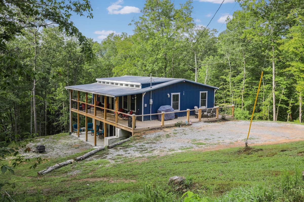 Great getaway with four bedrooms and a great view with an outdoor gas fireplace on the main level. The house has everything you need to enjoy your solitude near beautiful Norris Lake: mountain and lake views, gas stone-fireplaces, Amish rocking chairs on wrap around porch, leather couch and granite countertops, comfortable loft and peaceful scenery. Hand-hewn timbers are the structural bones of this luxurious cabin. Providing a sense of safety and security.