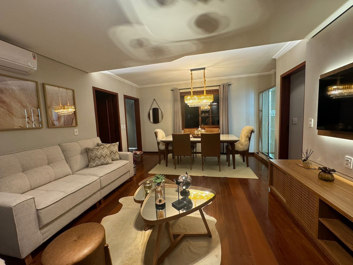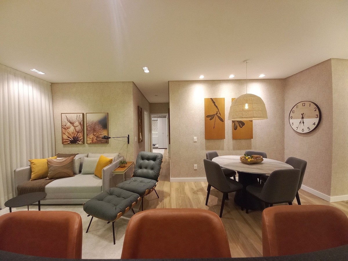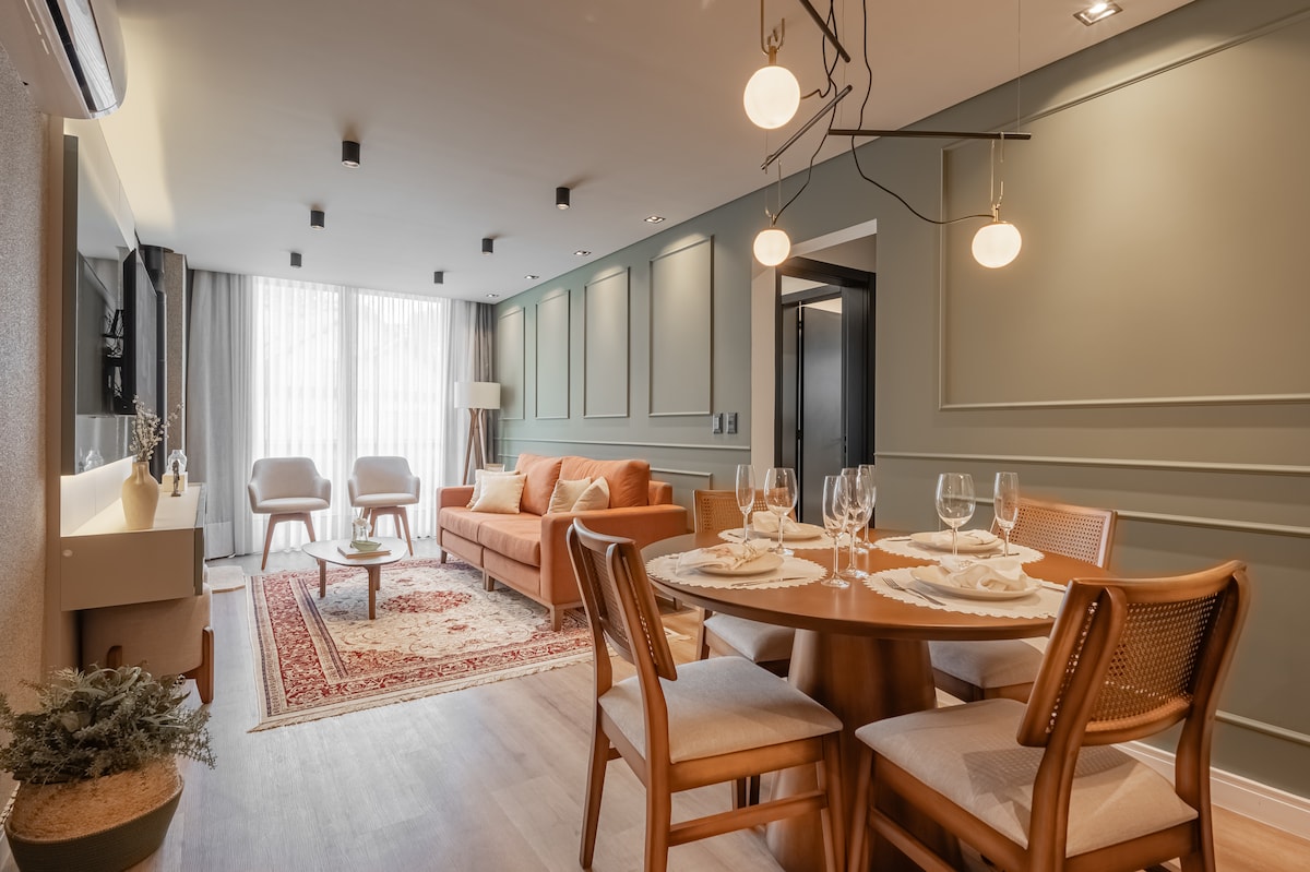 Stay in a modern, luxurious apartment with a privileged location! Enjoy an impeccable stay, with a fully equipped kitchen, cozy living room and rooms with Smart TV and fully air-conditioned. Just 300m from the covered street, the festival palace and 50m from Hard Rock Café Gramado, restaurants and markets and other Gramado attractions, this is the perfect retreat for leisure or business. Guarantee your reservation and experience the best of Gramado!