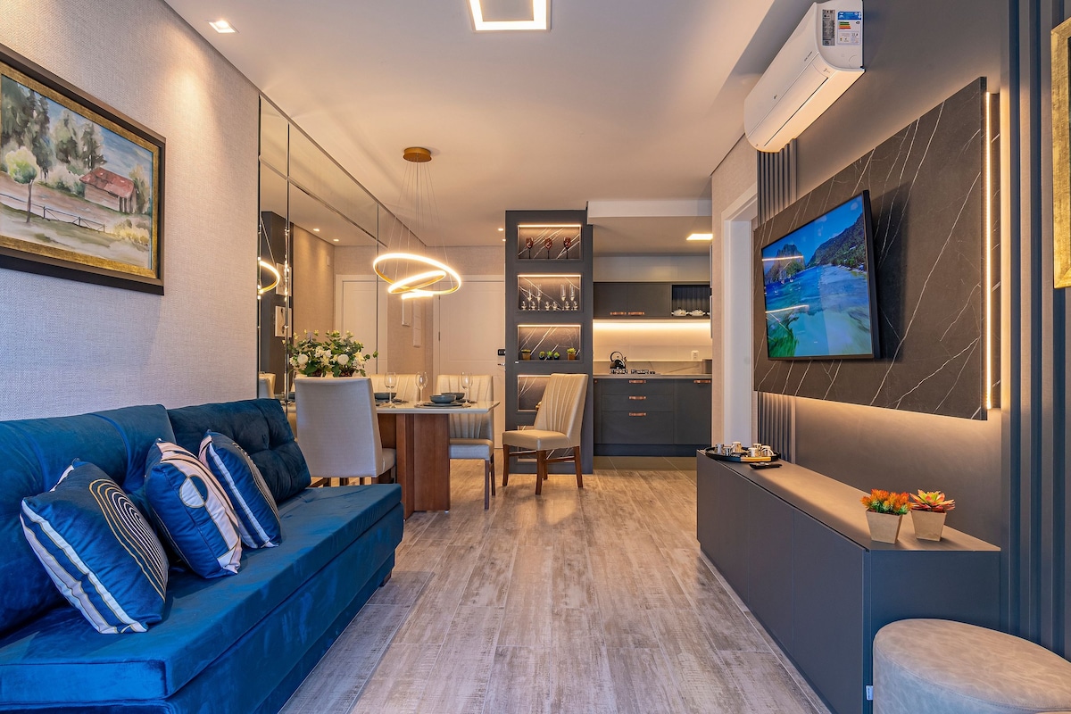 Este incrível apartamento de altíssimo padrão foi totalmente reformulado! Oferece 180m2 e elegância em cada detalhe, amplas janelas com vista panorâmica exclusiva do Vale do Quilombo, Smart TV de 70" na sala de estar e 43" em dois dormitórios! Além disso, fica apenas 2 quadras da Rua Coberta! Por ser localizado no centro, você poderá fazer muitas coisas a pé, tendo a comodidade de deixar o carro e contemplar com tranquilidade tudo que Gramado tem para oferecer!