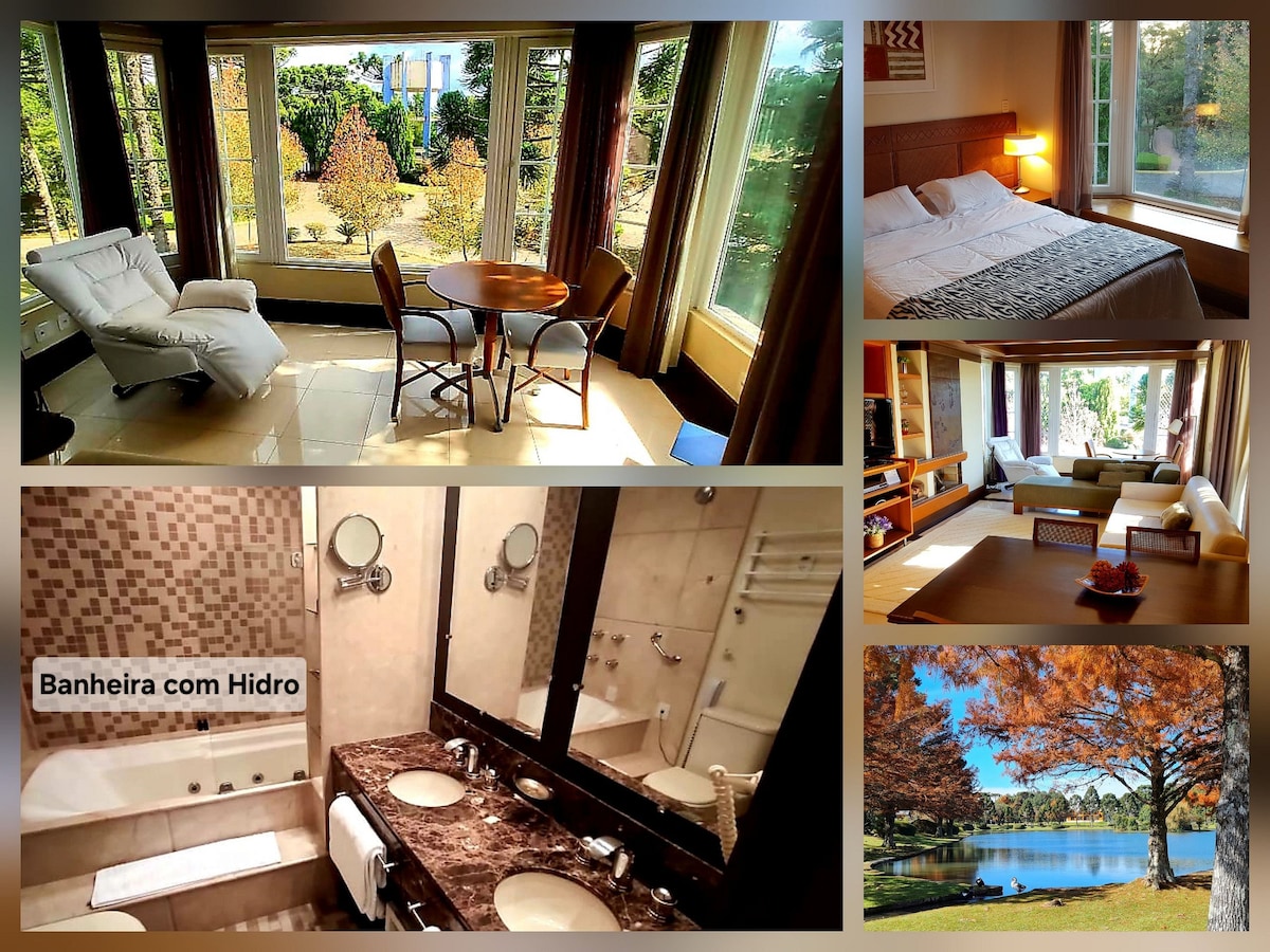Espetacular Apartamento Suíte, c/ quarto p/ casal, sala 2 ambientes e cozinha, todo mobiliado em alto padrão, com uma vista maravilhosa. Moderno, c/ todos os recursos disponíveis p/ tornar a estadia memorável, junto às mais lindas vistas da Serra Gaúcha. Muito verde, opções de lazer e conforto ao seu redor. Tem banheira de hidromassagem, iluminação ambiente, geladeira, micro-ondas, etc.