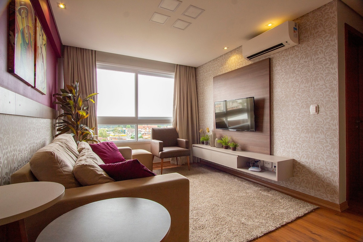 Magnifico apt em condomínio exclusivo à cinco 5 min de caminhada da famosa rua coberta. Venha momentos inesquecíveis em um apt charmoso com total infraestrutura, junto à natureza, com lareira, ar condicionado quente e frio, exatamente o conforto que você merece para desfrutar o melhor da Serra gaúcha. Seu pet de pequeno porte também é bem vindo!