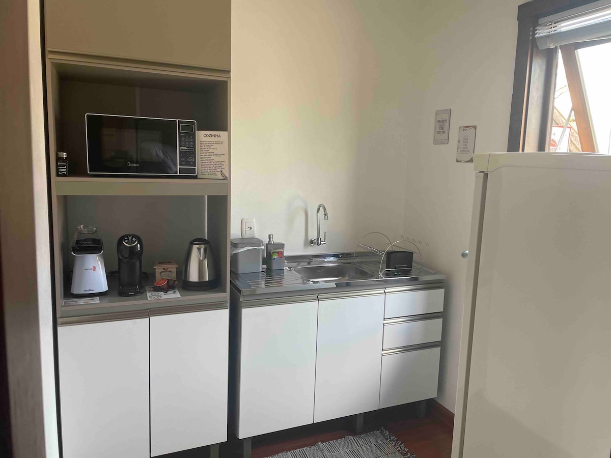 O Espaço Santa Rosa está situado a apenas 1,9 quilômetro da Catedral de Pedra, a 5 minutos (de carro) do Centro de Canela. Kitnet compacta de 24m² - com quarto climatizado quente e frio, cozinha e banheiro em bairro próximo à área central, com excelente localização! Seu pet de porte pequeno com vacinas em dia é bem vindo!! Temos cama de casal e sofá-cama para acomodar confortavelmente uma criança ou um terceiro hóspede.