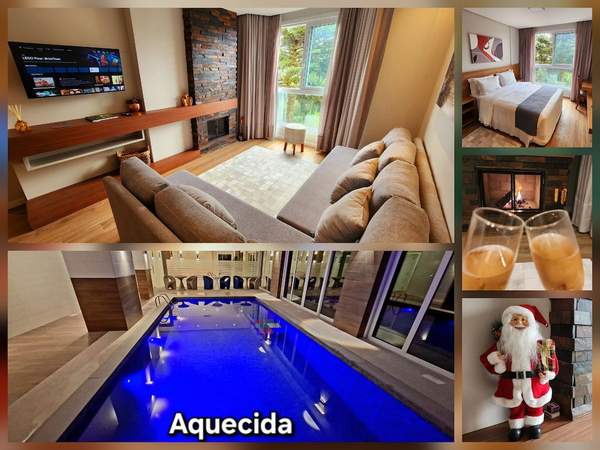-----VOCÊ VAI SE ENCANTAR!----- Novinho e c/ uma decoração impecável. 1 suíte; Sala c/ sofá-cama; Wi-fi; Ar condicionado; Lareira; Cozinha completa c/ eletrodomésticos; Churrasqueira; Piscina térmica coberta; Sala de jogos; Playground; Vaga de garagem; Sacada c/ linda vista. -------EXCELENTE LOCALIZAÇÃO------- 200m do Super Carros/ 400m Exceed Games/ 800m Museu do Automóvel/ 4min Mundo a Vapor/ 7min Centro de Gramado/ 7min Mini Mundo/ 8min Centro de Canela