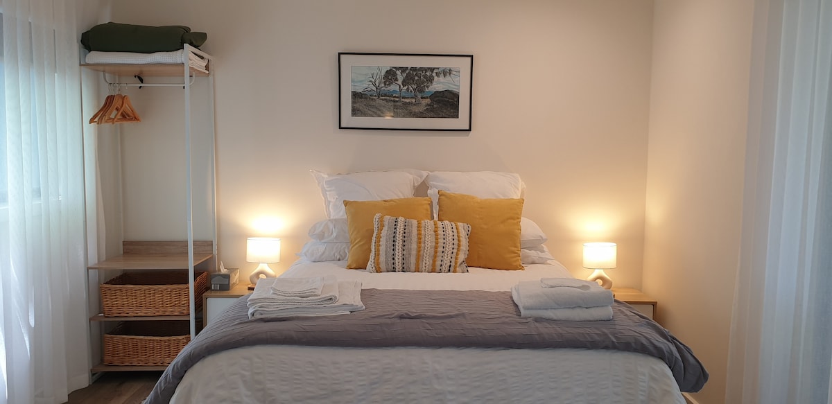 The cottage is light and airy with full picture windows facing the mountains, this includes the main bedroom. A deck also allows outdoor access of the same views. It is fully self contained and you do not have to share any part of it with others not in your group. Both bedrooms and the lounge room have reverse cycle air conditioners, and ceiling fans. Fast WIFI is also available at the cottage, perfect for those working away from home.
