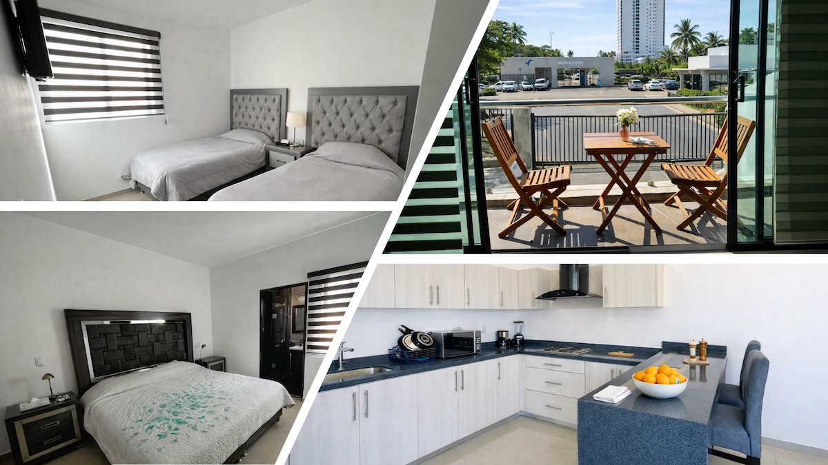 Visiting Mazatlán? Great! We have a superb place. Apartment 2 has what you need: ✔️ First-floor location 🔒 Inside a secure building, accessible by codes 🛏️ Queen bed for 2, max 4 if you rent an inflatable mattress ($300 MXN) 🚽Bathroom 🌬️ Minisplit (AC unit) 🥄 Equipped kitchen 📺 Smart TV 🚀 Internet Plus, there is a terrace with a pool, grill, and bar lounge available on the 3rd floor. 5 min. from the Golden Zone (Zona Dorada) and close to restaurants, Soriana, and Walmart.