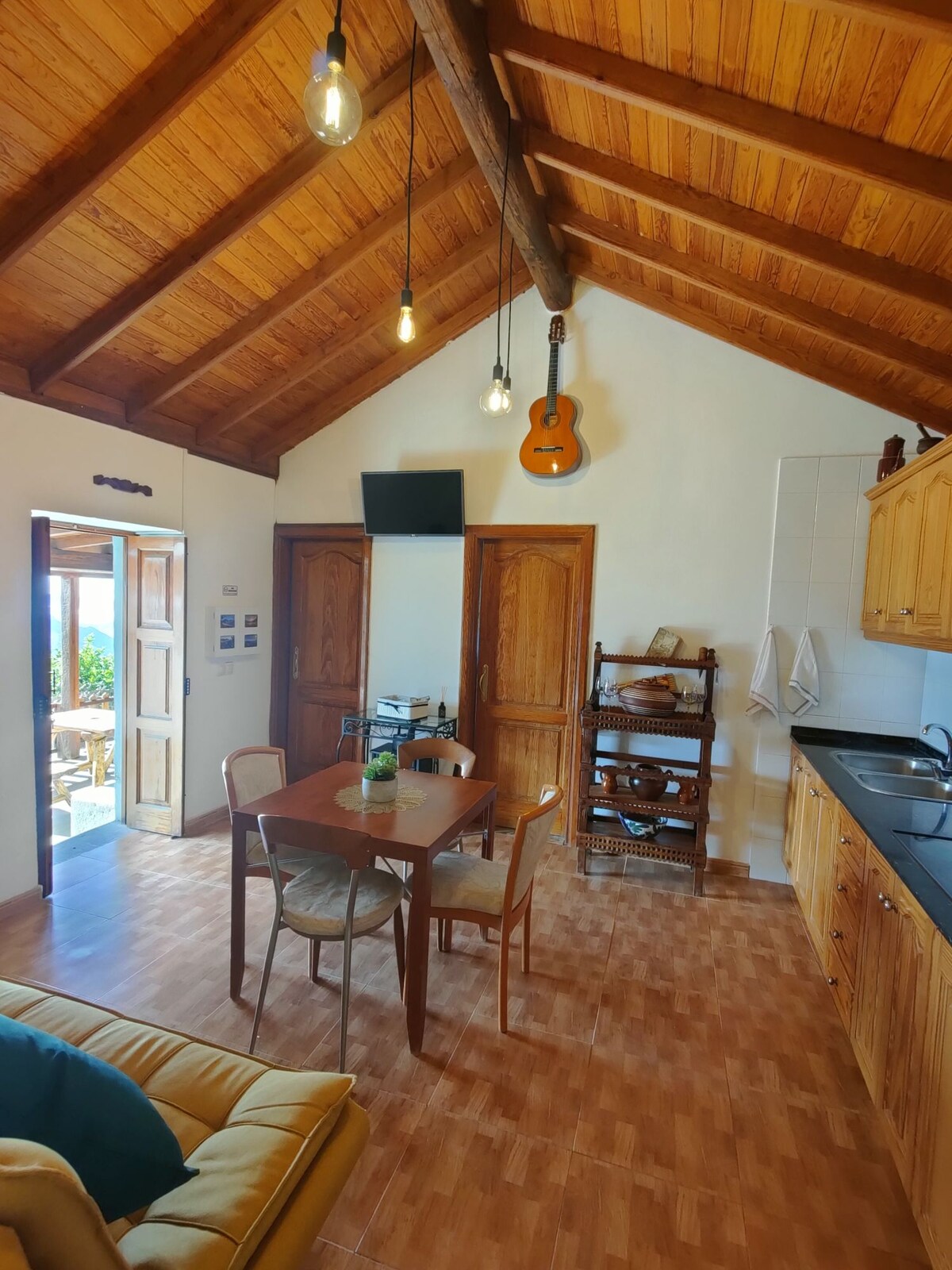 La casa se encuentra en un enclave rústico de las medianías de Gran Canaria en un lugar muy tranquilo, con vistas al barranco de las Tirajanas. Consta de 164 metros construidos, distribuidos en 2 dormitorios, una sala de estar, una cocina, un baño, una terraza cubierta y otra descubierta. Además dispone de una zona de recreo con barbacoa, horno de leña y mesa rústica. Posee 2 dormitorios dobles y además un sofa-cama, la cocina tiene lavavajillas, horno, inducción y menaje. Dispone de Smart-TV.