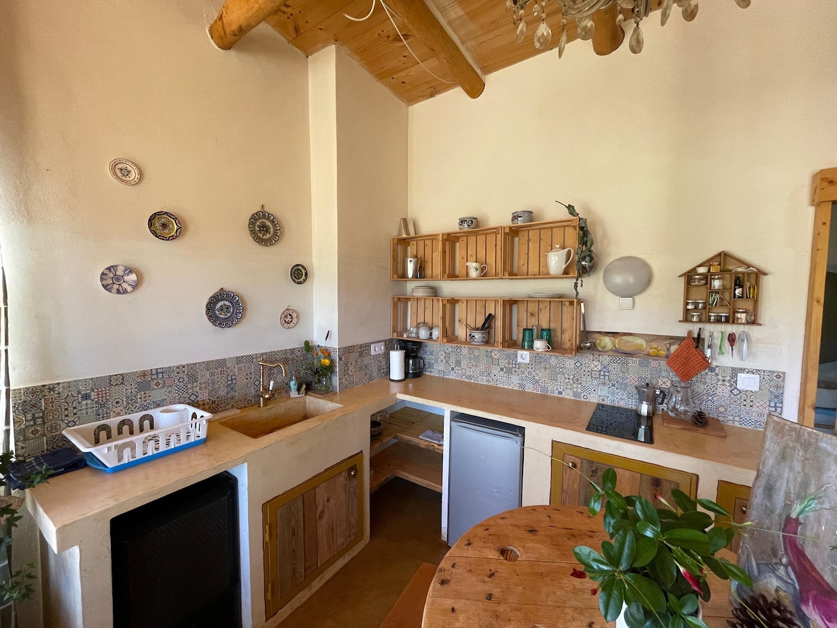 Het huis met zwembad heeft een oppervlakte van 100m2 en bevindt zich in een rustige omgeving. Het huis is gelijkvloers en is vanaf de voortuin te bereiken via een aantal traptreden. Het ligt in een vrij afgelegen en rustige omgeving in de bergen en in de buurt van mooie wandelroutes. 's Nachts kun je de sterren bijna aanraken. Zonnig gebied, zeer goed weer. Ideaal voor gezinnen. Je hoeft je hier niet te vervelen. We hebben een tafeltennistafel, dartbord en tafelvoetbal.