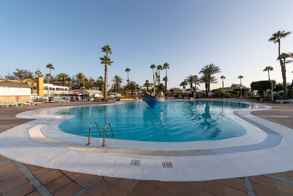 Bright and very quiet bungalow, almost inside the Maspalomas golf course, in a residential complex. All on a level with no stairs! Gorgeous gardens, pools and solarium. Restaurants, supermarkets and more nearby. Complete satisfaction and pleasant stay with all the comforts of a house very equipped. One bedroom, recently refurbished within walking distance to the dunes and beach. Ideal for walking, cycling, etc. Very welcoming. Great for couples.