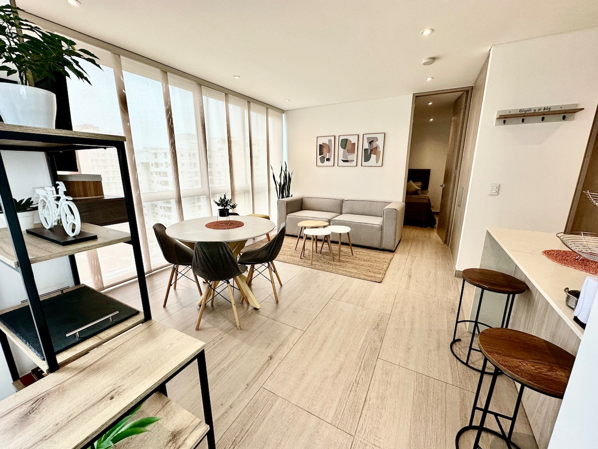 Disfruta de una estadía cómoda, moderna y funcional en el corazón de Barranquilla. Este loft en Distrito 90 es perfecto para parejas, viajeros de negocio o ejecutivos que buscan descanso, estilo y excelente conectividad. Capacidad: 2 adultos Área: 45 m² Edificio con zonas comunes exclusivas El espacio incluye: WiFi de alta velocidad Cocina totalmente equipada Cerradura digital (check-in sin contacto) Seguridad 24/7 y ascensor No se permiten visitas externas (solo huéspedes registrados).
