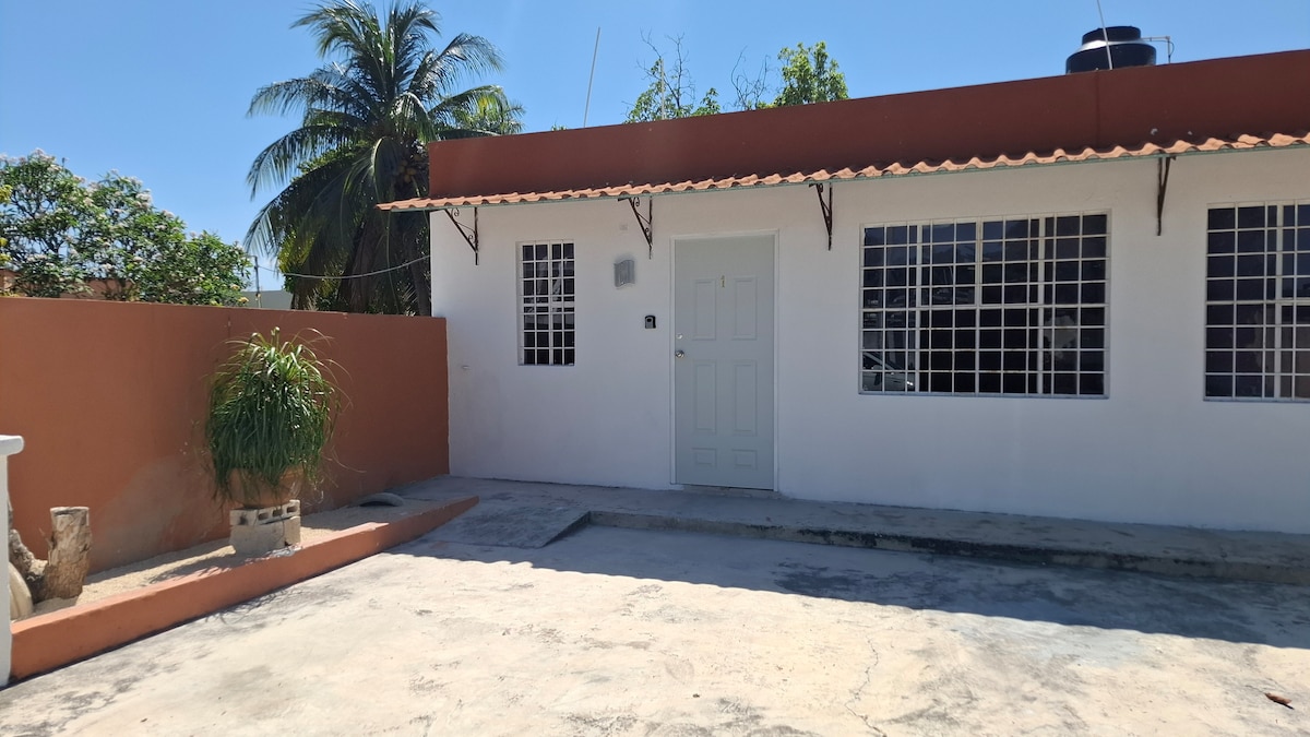 Apartment Loft style (40 m2) in closed complex ( of 5 apartments in total). The Apartment has social space, small kitchen with basic things to cook, upstairs 1 bedroom with great beding, 1 bathroom. The space its ideal for 2 people but we have an sofa bed we can comfortably take 3 people. Parking space inside teh property. 10 minutes away by car from Paseo de Montejo and Centro, and 10 minutes away fron the north of the city. Great connection with circuito. Parque de la Aleman 2-3 blocks away.