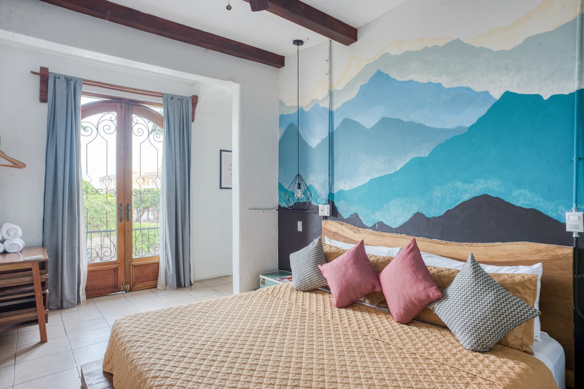 Experience the Spanish Colonial atmosphere of the well appointed suite in a gracious and quiet setting close to everything. Custom made details will delight you in this charming private space. You will have your own kitchen that is equipped for a longer stay. There’s a private an en-suite bathroom as well as balcony and access to the pool and book exchange. We are located in the historical district of Granada. The Museum and Church of San Francisco are across the street. In house restaurant