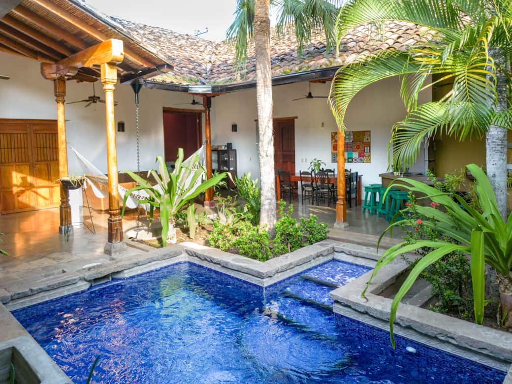 Discover colonial Granada from Tesoro Dorado! Just 3 blocks from Central Park and Granada Cathedral, this bright colonial home features a stunning central pool open to the sky. Enjoy the grand living room, poolside dining, and fully equipped kitchen. All 3 spacious bedrooms have A/C and private bathrooms. Plenty of room for large families to spread out and enjoy. Relax on the top floor terrace with volcano and Cathedral views. Walking distance to Calle la Calzada's restaurants and nightlife!