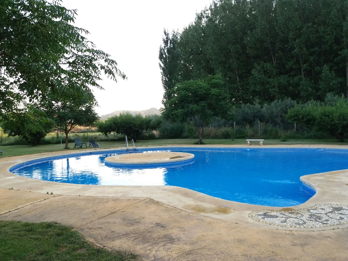 Cueva para 2 personas con salón cocina con chimenea, un dormitorio, baño, patio, jardín , mobiliario de jardín, piscina exterior( en verano ),zona de barbacoas , parking gratis y wifi gratis en zonas comunes. Temperatura todo el año entre 18 y 20 grados.