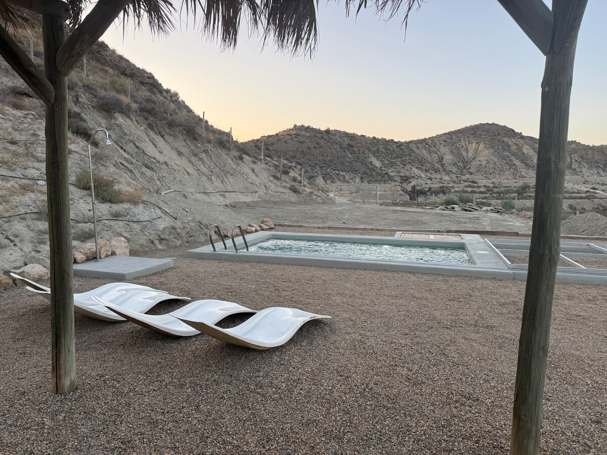 READ FULL DESCRIPTION. Wake up to views of the Sierra Nevada Mountains and the Lecrín Valley from your private terrace. This suite is located on the top floor of our farmhouse, with separate entrance. The suite is designed for your maximum comfort, with a bedroom with a 180x190 cm double bed, a private bathroom with a shower, a private living-dining room with a sofa bed, and a kitchenette (for storing and heating food). It is equipped with underfloor heating and ceiling fans.