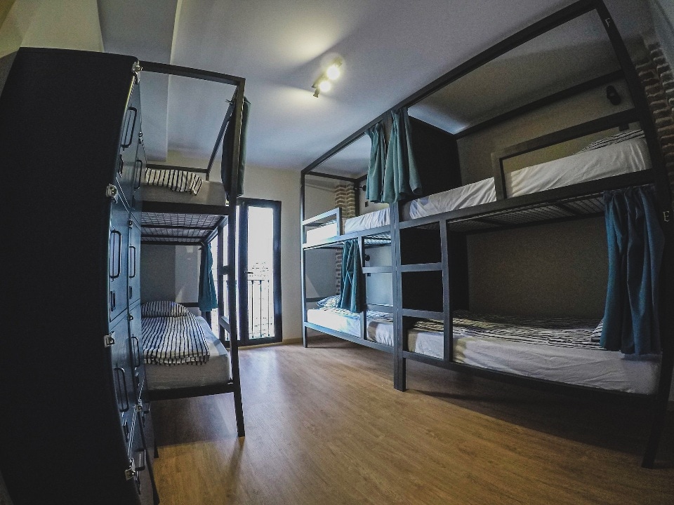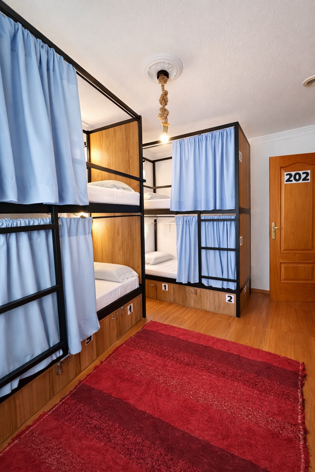 Vive Granada desde el corazón histórico en la emblemática Calle Elvira. Dormitorio compartido con 3 literas (6 camas), cada una con cortina, luz, enchufe y taquilla. Wi-Fi rápido, cocina compartida y terraza soleada. Ambiente multicultural y social, ideal para mochileros que exploran la Alhambra, el Albaicín y la Catedral a pie. Auténtico, céntrico y económico, perfecto para una experiencia local completa.