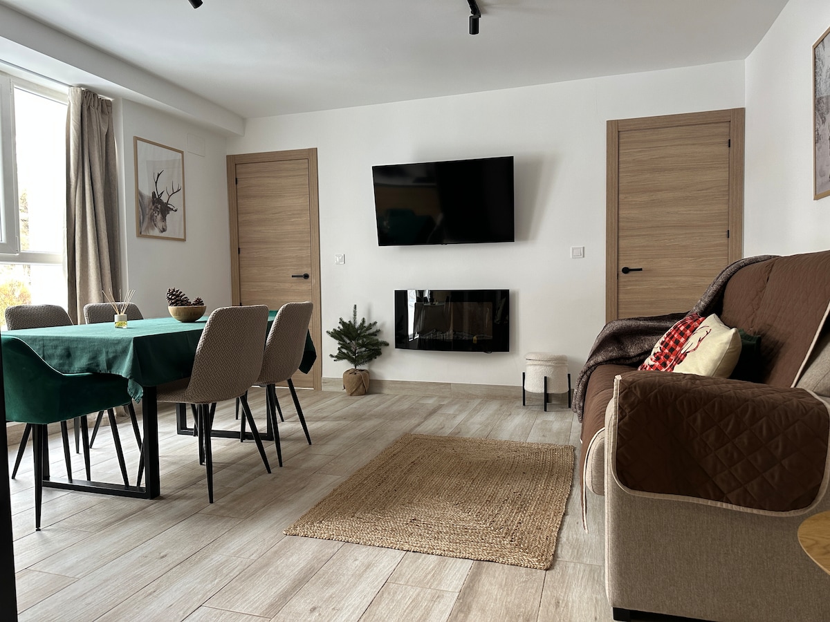 Alojamiento CON VISTAS ESPECTACULARES a la montaña que está completamente reformado y diseñado para que los huéspedes se sientan como en casa. Su amplitud, comodidad, equipamiento y fantásticas vistas convertirán tu estancia en inolvidable.