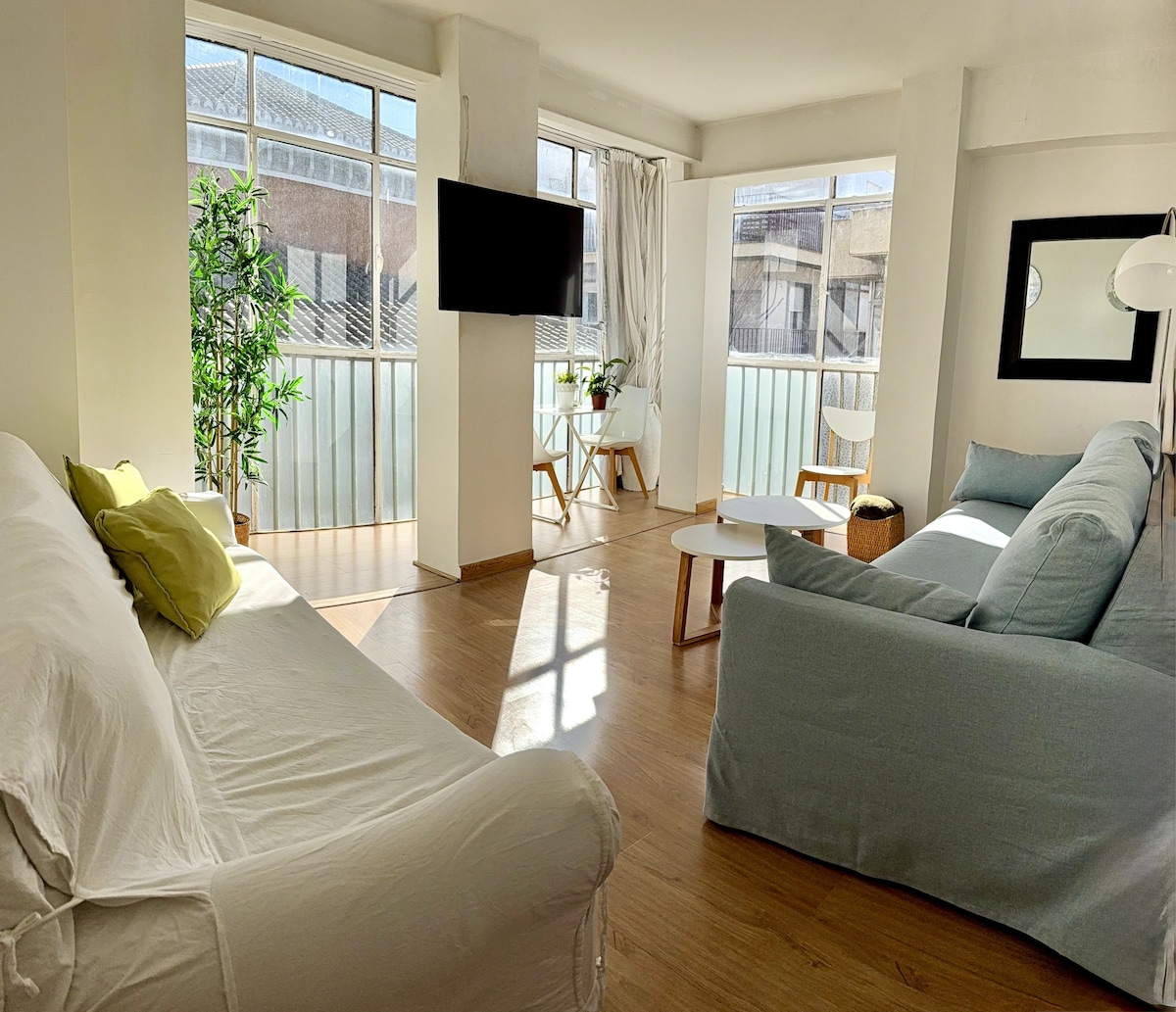 Apartamento nuevo, en precioso edificio antiguo, insonorizado con cierres de doble acristalamiento térmico y acústico, muy luminoso, con 2 balcones al exterior, en pleno centro de Granada con vistas (Plaza de Gracia). Full equipe. internet por Fibra . rapido 600 Mb Sigo el Protocolo de Limpieza Avanzada de Airbnb. Ubicación perfecta. Ideal largas estancias y cortas, en familia o para trabajo. Aparcamiento a 50 metros . Necesario reservar. Coste no incluido en la estancia.