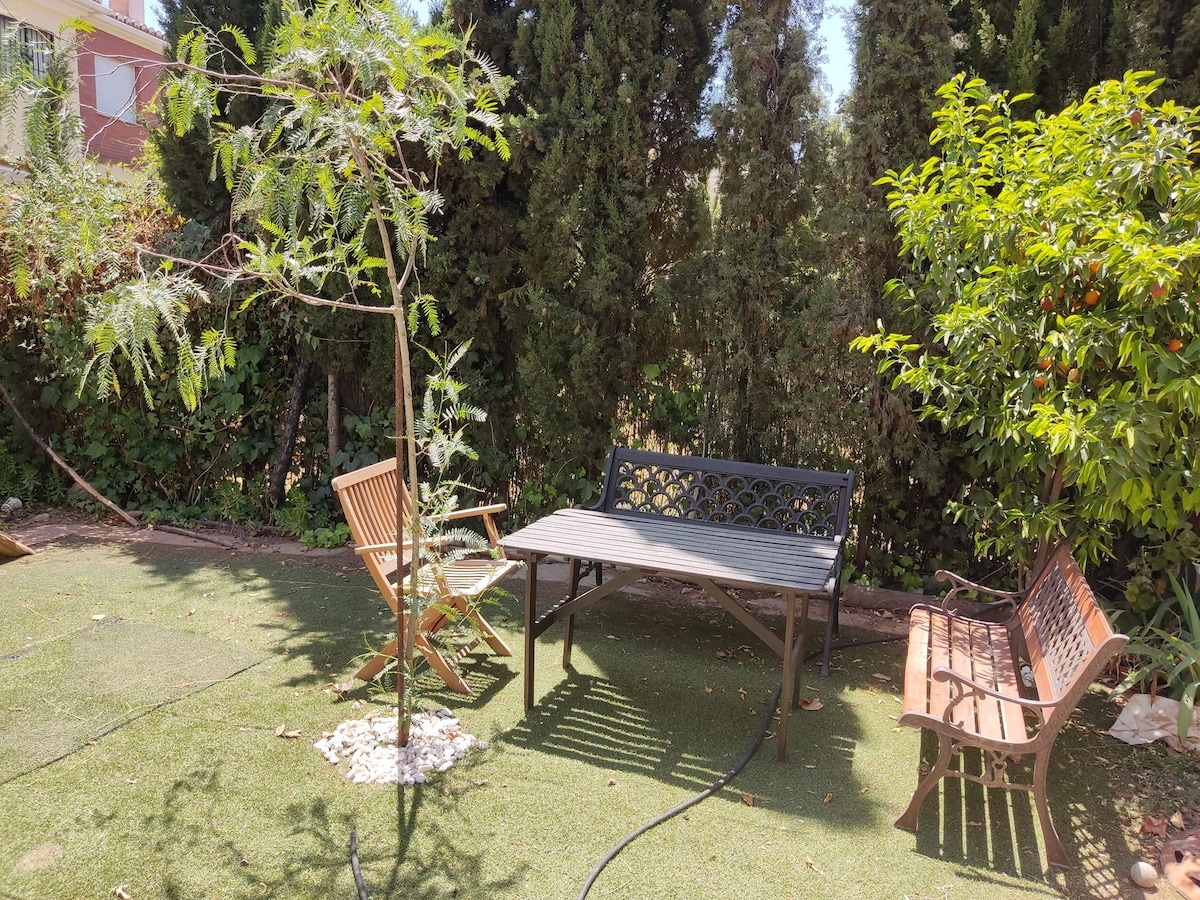 En Cenes de la Vega, apartamento independiente, con cocina, salón, dormitorio, baño, ducha, lavadero, patio y garaje. Estamos a 5 km de la Alhambra y del centro de Granada, posibilidad de ir en coche o autobús urbano (cada 10min) desde Cenes. A 30 km de la estación de esquí de Sierra Nevada ( parking de Pradollano ) salida directa. A 70 km de la playa (45 min en coche por autovía ). Además, por su situación privilegiada, se puede realizar la práctica de senderismo, equitación, MTB y parapente.