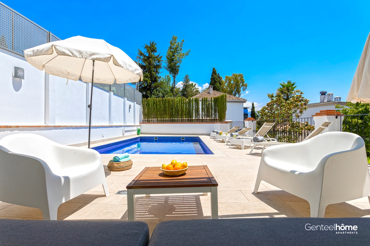 Experience a unique stay in this spectacular apartment located in the Realejo district, at the foot of the Alhambra. Set in a beautifully restored Carmen with over 150 years of history, it combines charm and comfort. It offers 3 bedrooms with en-suite bathrooms, a fully equipped kitchen, living room with Smart TV, private terrace, and garage with EV charger. Shared outdoor space with Andalusian patio and pool. Just a 15-min walk from the Alhambra and city center. Ideal for families or groups.