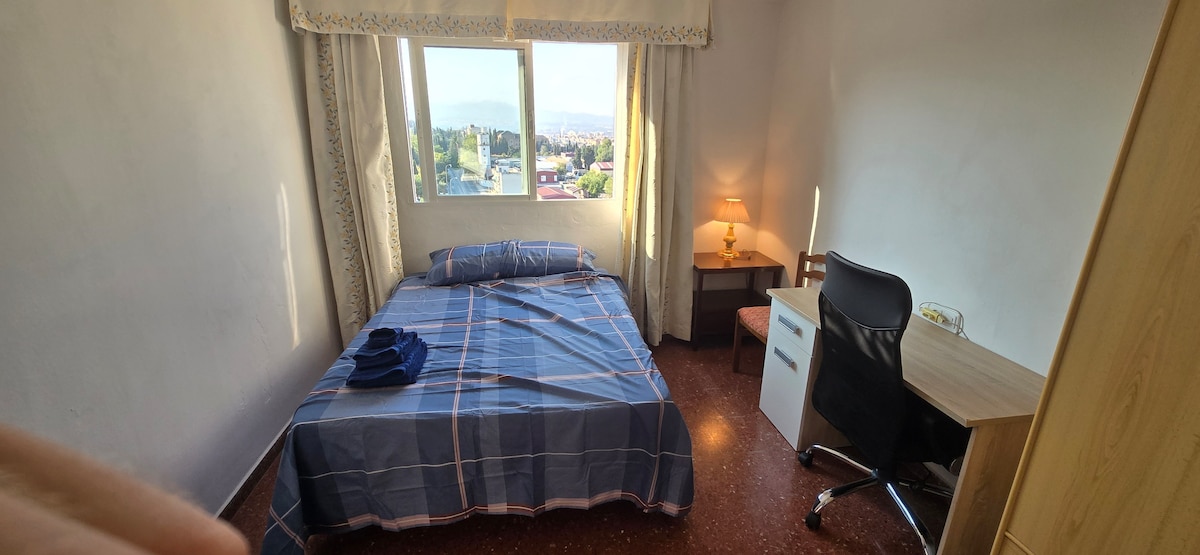 Bright double room in a family guesthouse in Granada. Cozy 3x3.5m space with double bed, TV + Netflix. NOTE: We live here with our small baby (always peaceful at night, but sometimes whiny by day time). Enjoy a sunlit living room with mountain views, fully equipped kitchen & washing machine. Free coffee & tea, super fast WiFi. Perfect for travelers seeking comfort, natural light, and a warm, family-style stay.