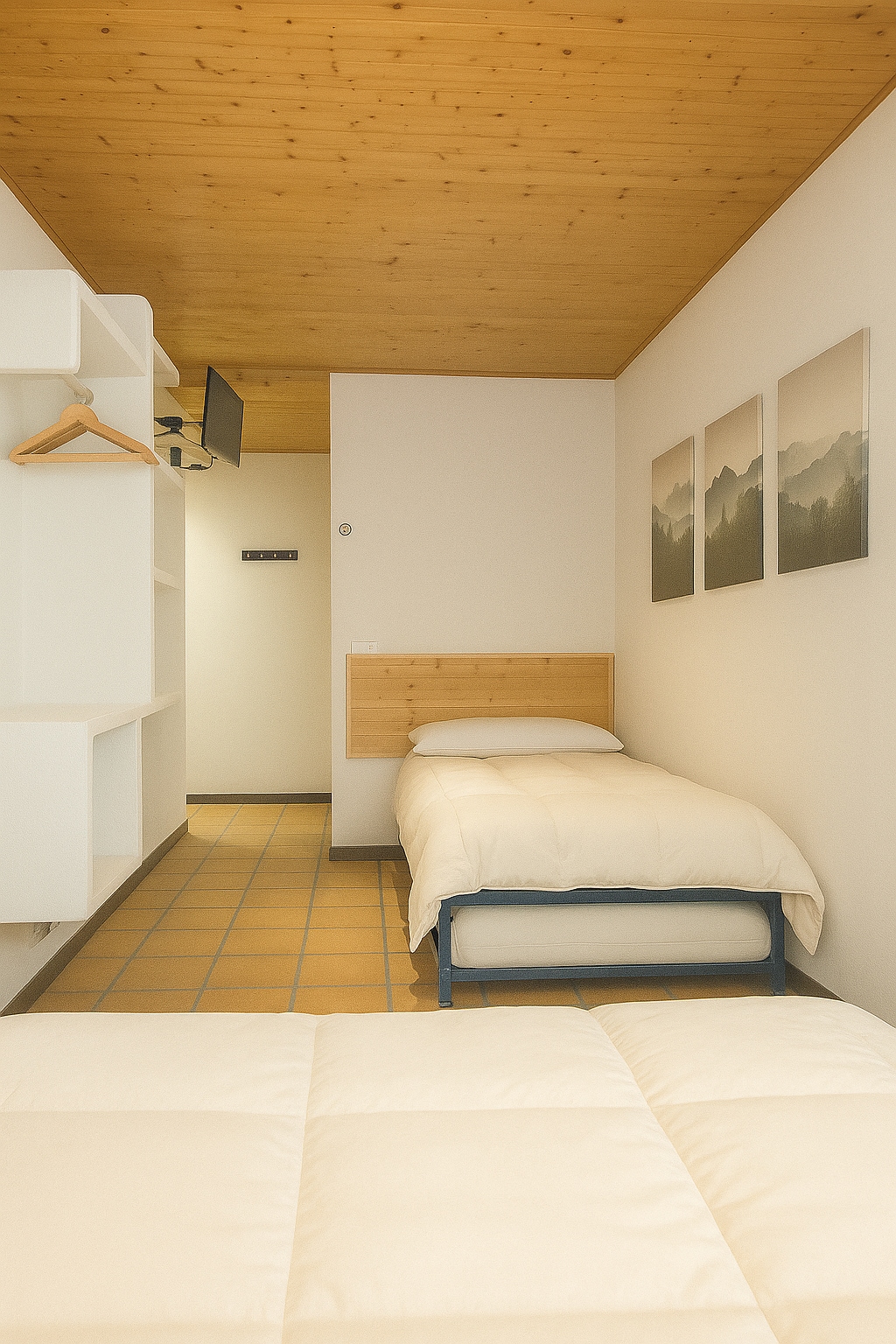 Quédate en este extraordinario alojamiento y no te pierdas nada. La habitación doble con baño compartido cuenta con dos camas viscoelásticas de 90cm, aire acondicionado, WiFi gratis, TV de pantalla plana, armario y, bajo petición en recepción, hervidor eléctrico y plancha para ropa. La unidad ofrece 2 cama individuales, compartiendo el baño solamente con una habitación. Un/una menor gratis utilizando las camas existentes.