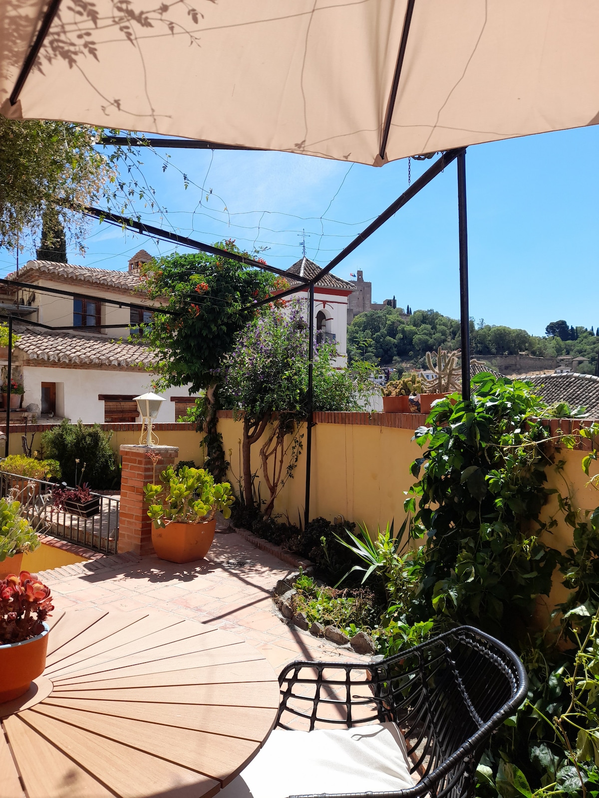 CASA DEL BESO The house is very authentic, with a terrace and views of the Alhambra, it was designed and rehabilitated by our father, Manuel, an architect who emigrated with our grandparents and who years later returned to his land, to our beloved Granada. It is located on a pedestrian street in the Lower Albayzin, 300 m. from Plaza Nueva, a largely pedestrian UNESCO heritage district. Thanks to the location you will not need the car and you can walk to the most emblematic places of Granada.