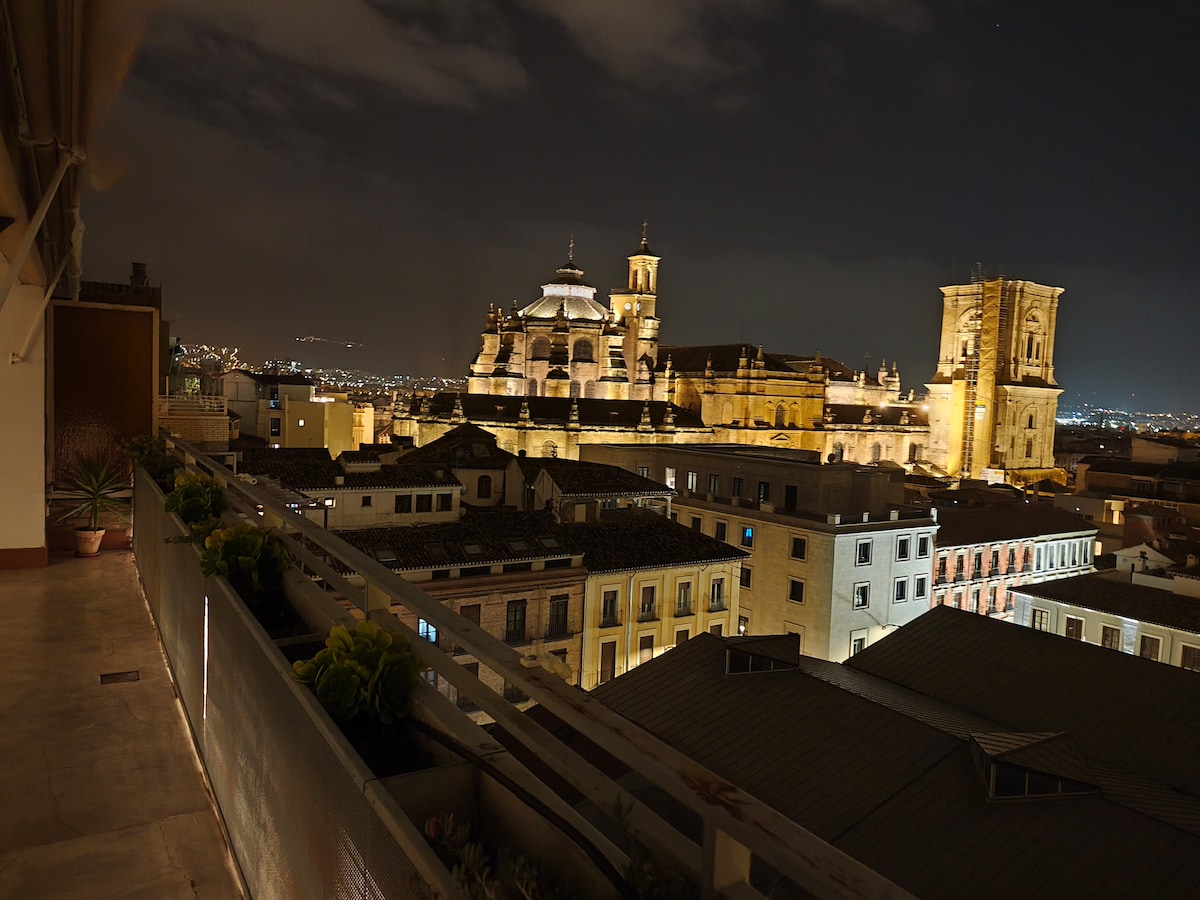 Precioso ático, increíbles vistas!!. Terraza con vistas a la Alhambra, Catedral y los tejados de la ciudad. Muy luminoso, decorado moderno con tradicional y todas las comodidades. Zona inmejorable a un paso de la Catedral y Plaza Bibrambla y a 2min de Plaza Nueva, Albaicín o acceso a Alhambra. Zona todos los servicios. Ideal para disfrutar cómodamente de la cuidad. SmartTV, Ducha de lluvia, luminoso, aire acondicionado y estupenda terraza para disfrutar de sus increíbles vistas! VFT/GR/00146