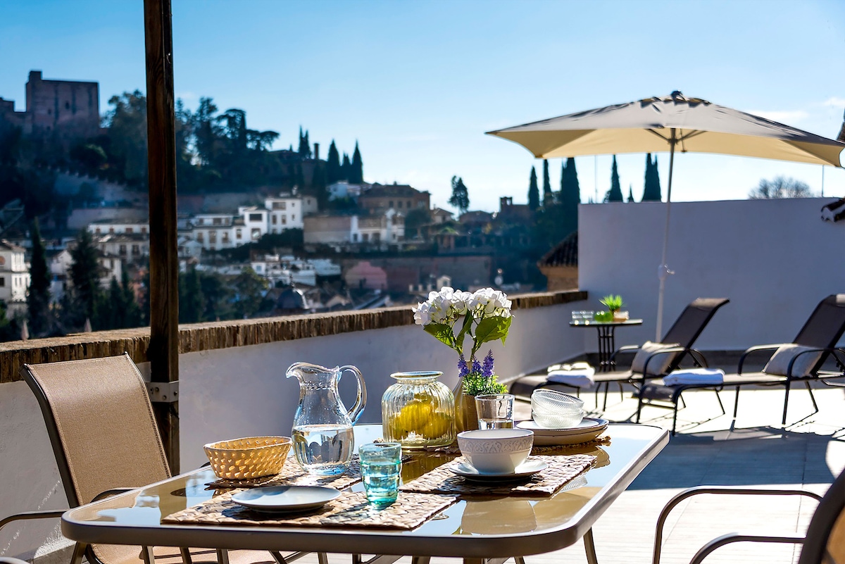 LoveGranada住宿加早餐。Atico Centro。阿尔罕布拉景观。