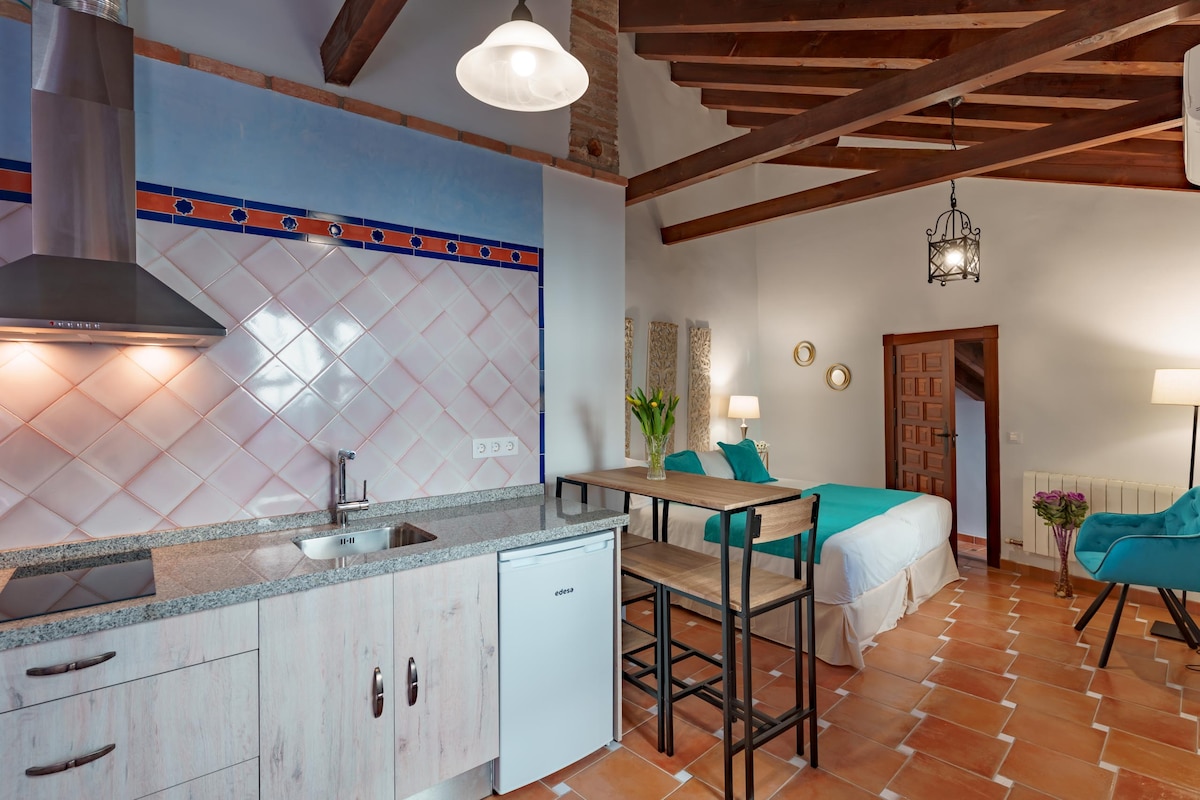 /!\ The terrace is a shared space with views of the Alhambra Comfortable studio for 2 guests. It includes a sleeping area, a living space with table, chairs, flat-screen TV, and a work corner, as well as a fully equipped kitchen with toaster, microwave, salt, pepper, oil to prepare your meals at home. Private bathroom with shower, WC, hairdryer, and shampoo. ℹ️ This listing includes two similar studios, as shown in the photos, but we cannot guarantee which one will be assigned to you.