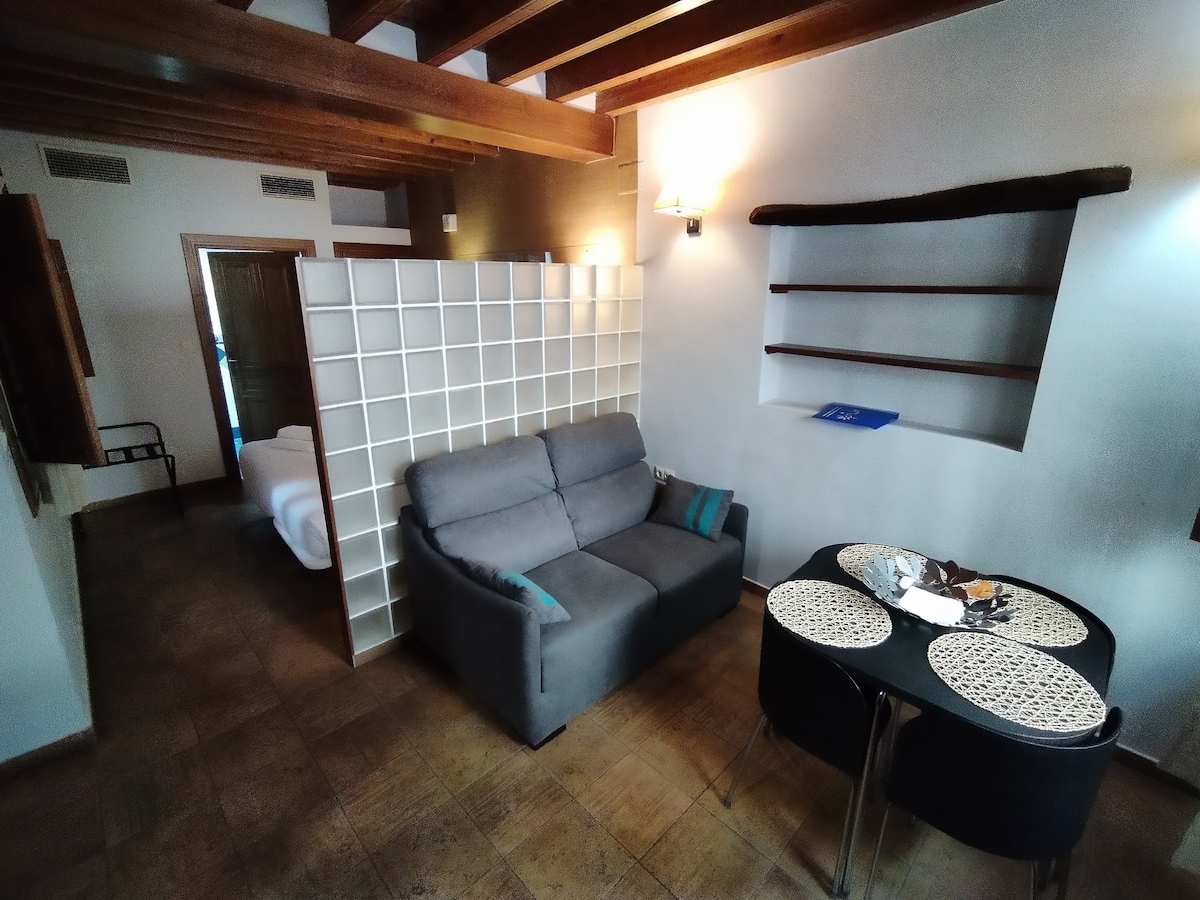 El estudio ejecutivo es un pequeño apartamento con todo lo que puedas necesitar para disfrutar de tu estancia en Granada. Tiene una cama de 1,80cm y un sofá cama. Cocina y baño completo. Nuestro punto fuerte es la terraza compartida en la azotea, desde donde podrás disfrutar de las mejores vistas de Granada y la Alhambra