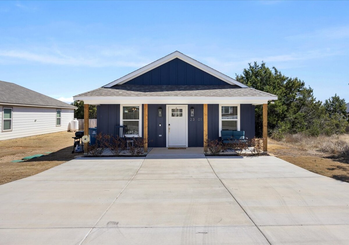 This charming little cottage is new construction, designed in the “industrial farmhouse chic” style. It’s the perfect place for a romantic getaway or a relaxing country adventure. Take in the wooded views from the screened-in back porch, walk down to the lake, or enjoy a day out in downtown Granbury! If you're lucky you may even see the neighborhood road runner. He loves to use our back porch as a hiding spot!We’d love to have you, so come stay a while.